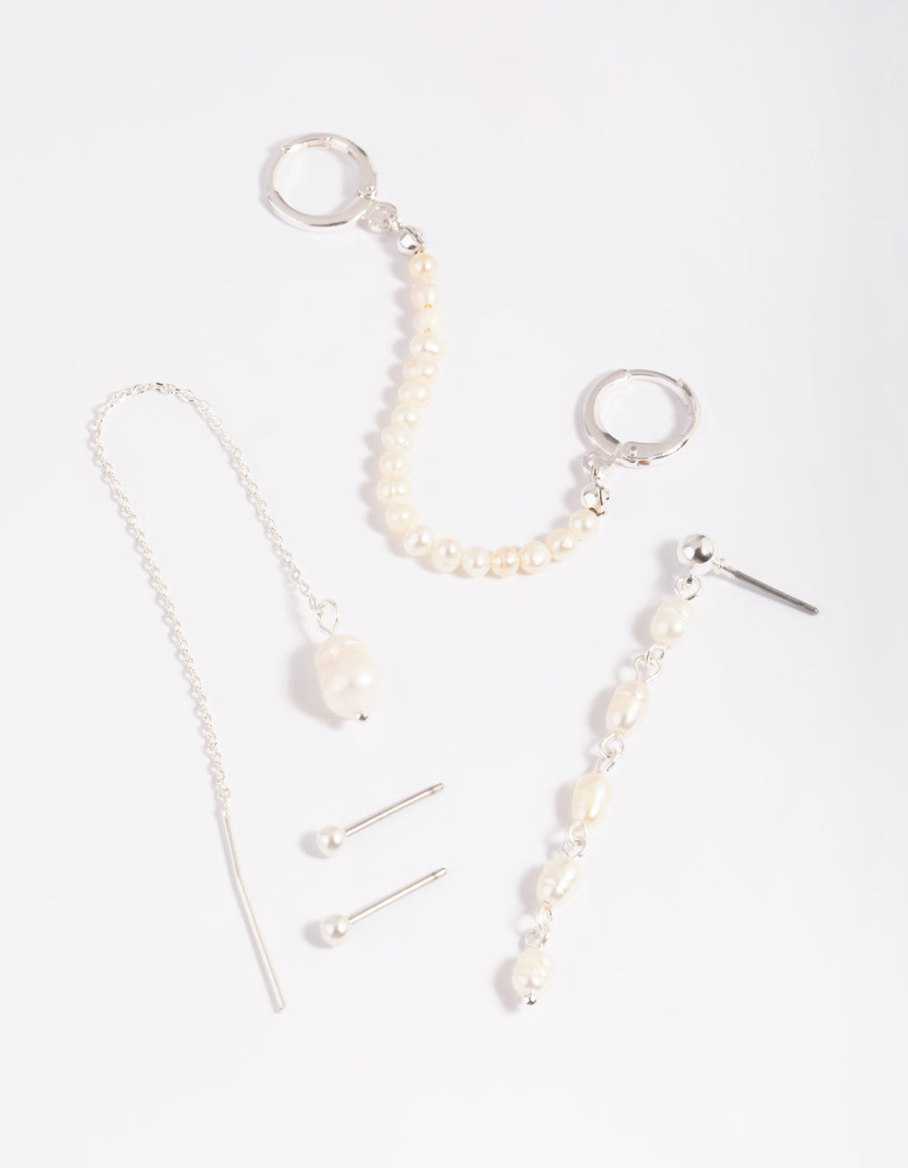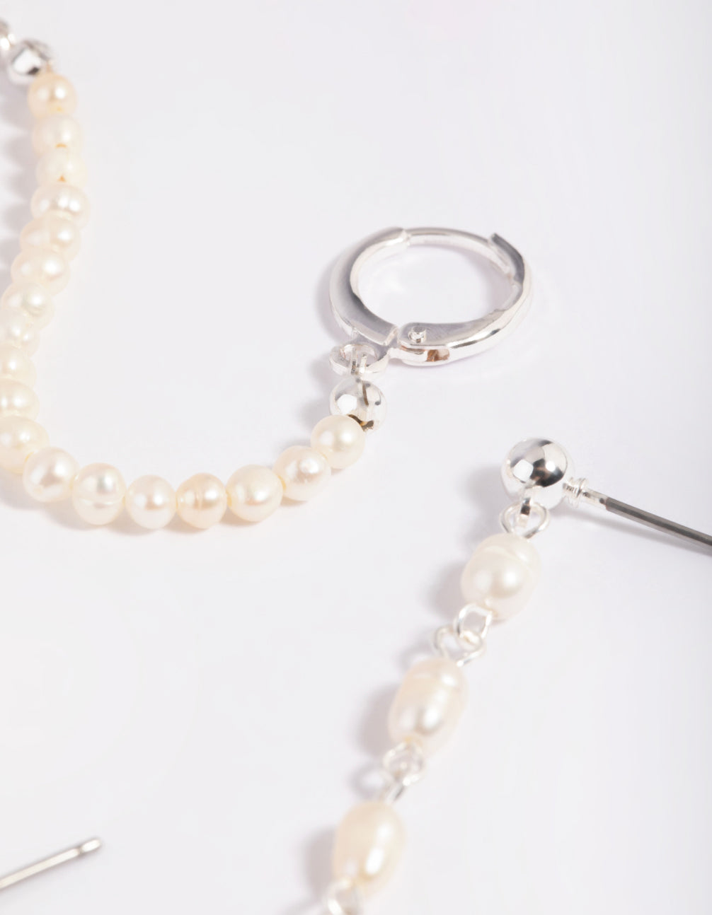 SIlver Plated Pearl Chain Earring Stack 6-Pack