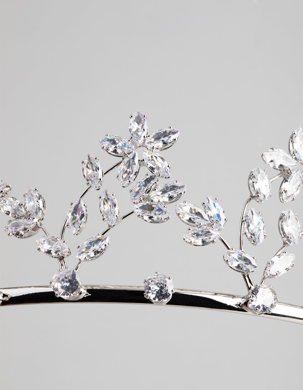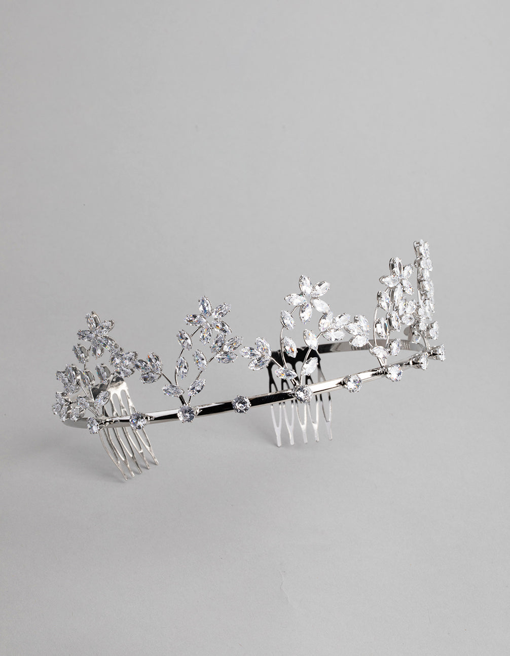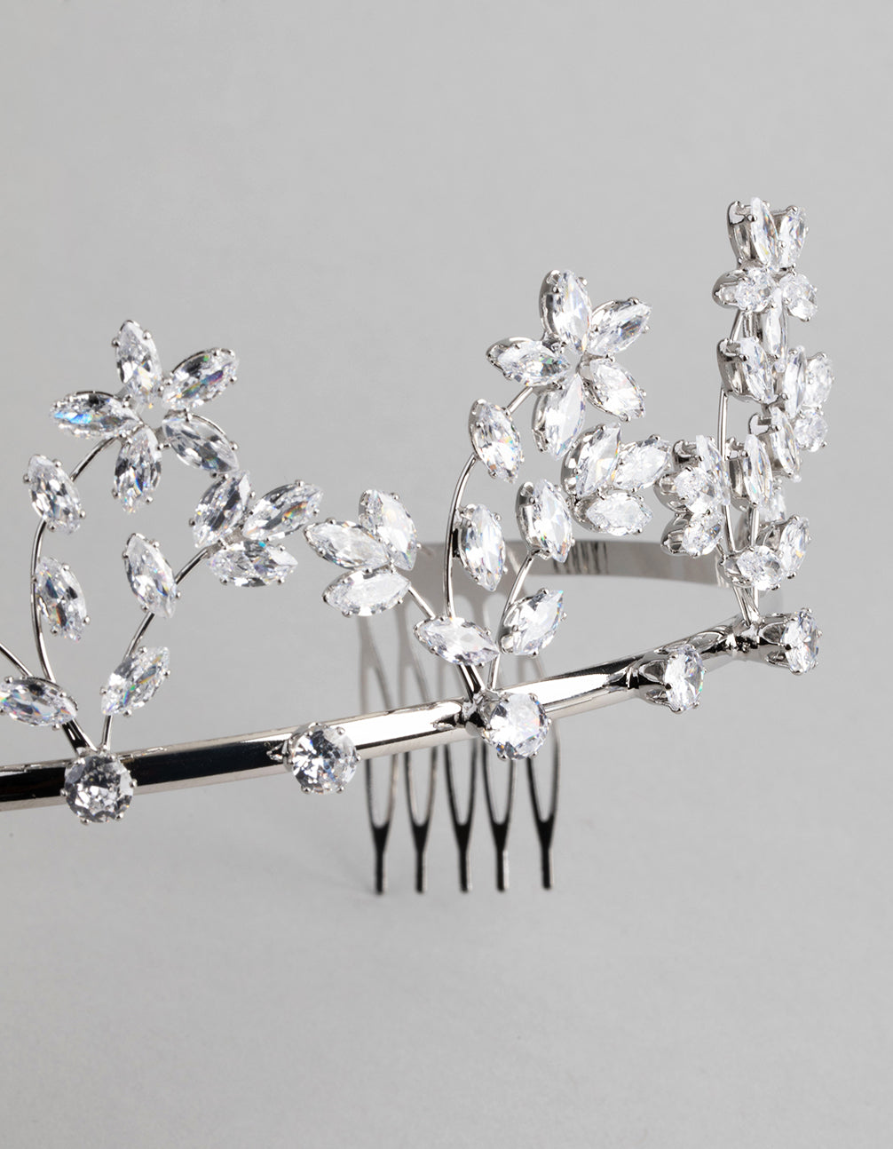 Rhodium Cubic Zirconia Draped Flower Tiara
