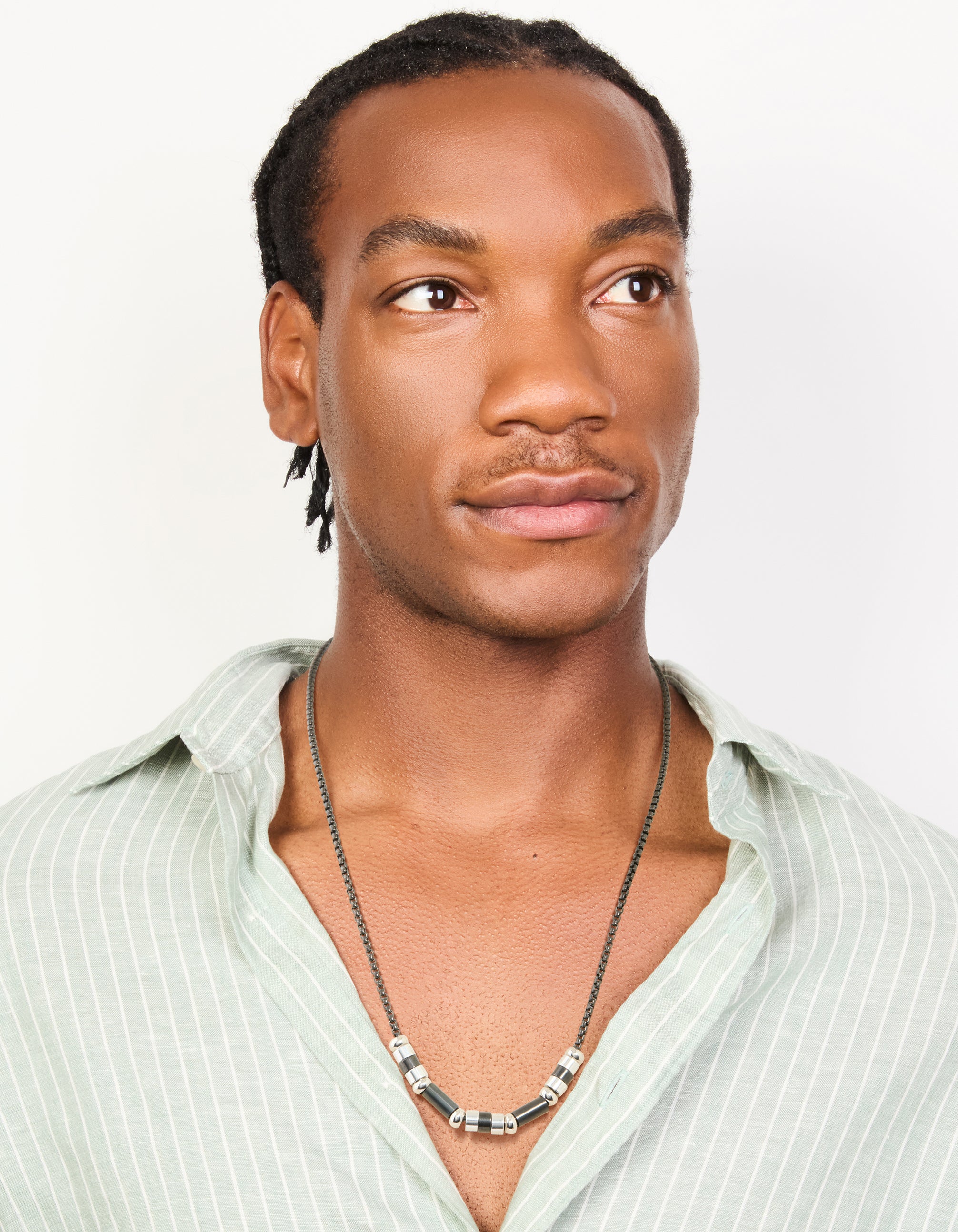 • Mens Waterproof Stainless Steel Mixed Rondelle Necklace - link has visual effect only