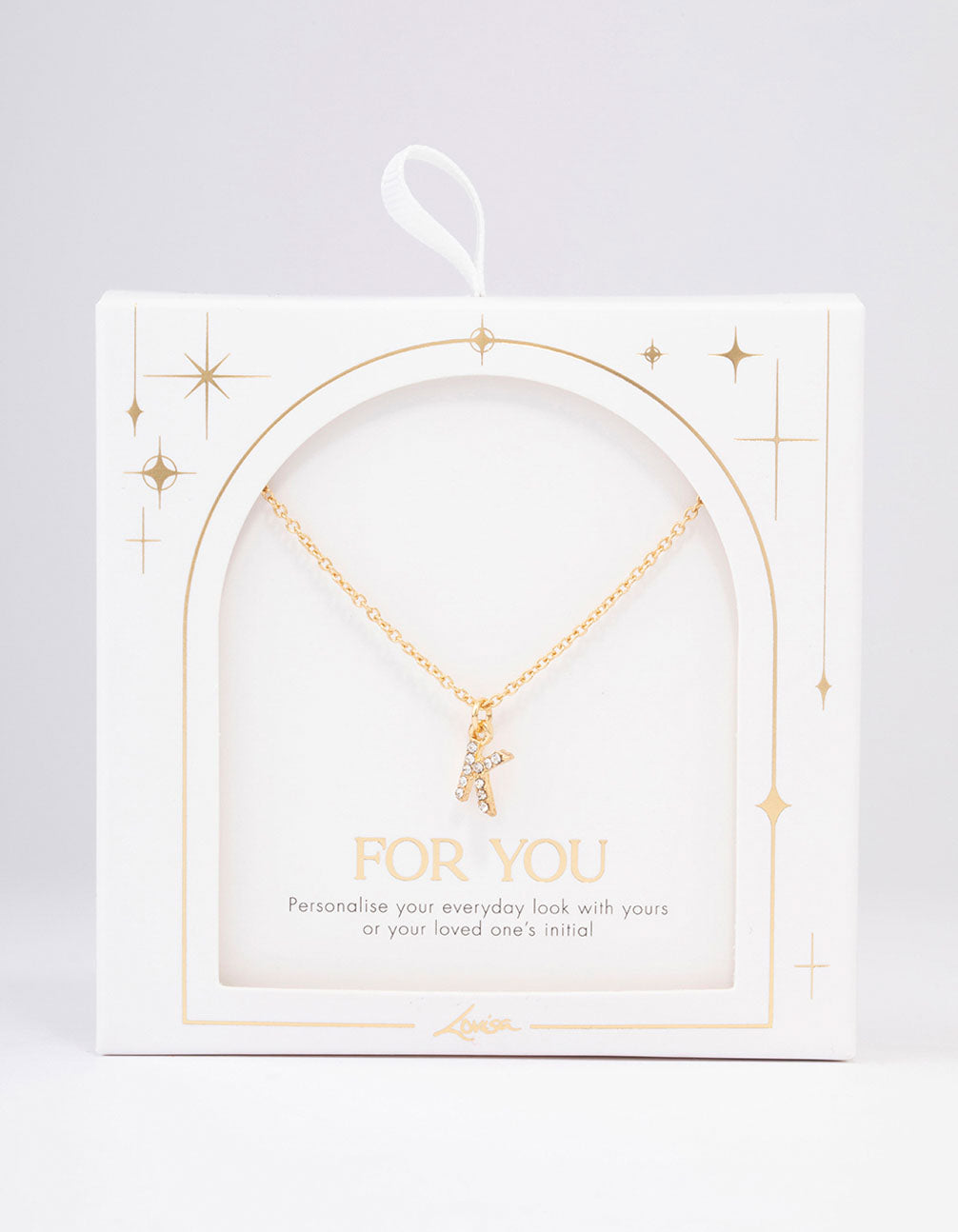 - This gift set features a gold plated pendant necklace adorned with a timeless letter K initial charm.
