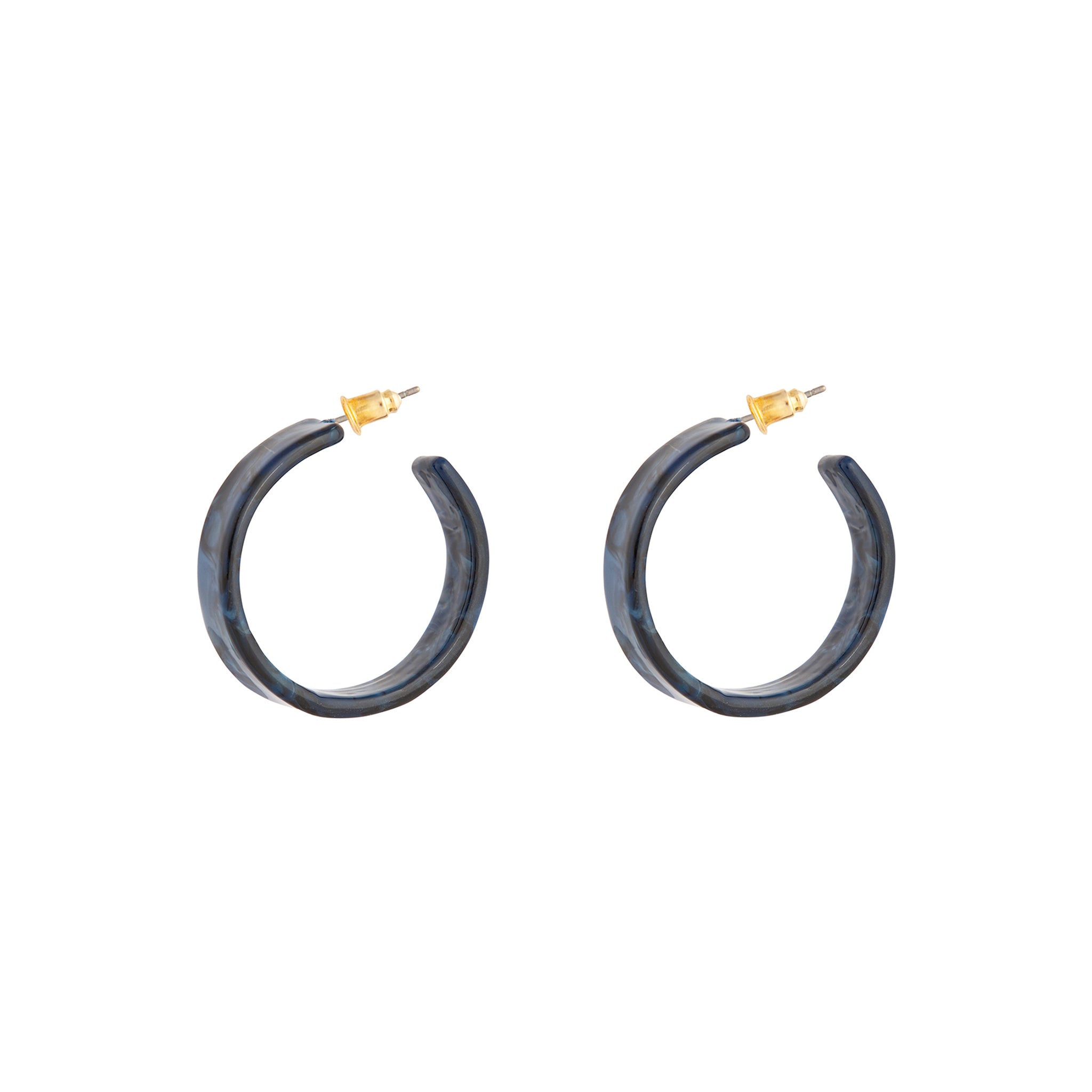 These earrings come in a deep blue swirling acrylic design.