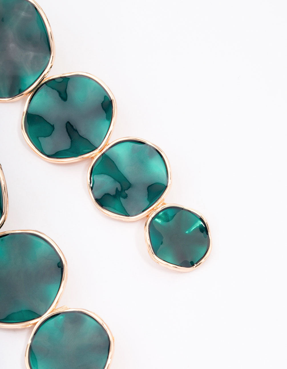 - Style these Gold Multi-Disc Green Drop Earrings with a set of simple, gold-toned stud earrings for a layered look.
