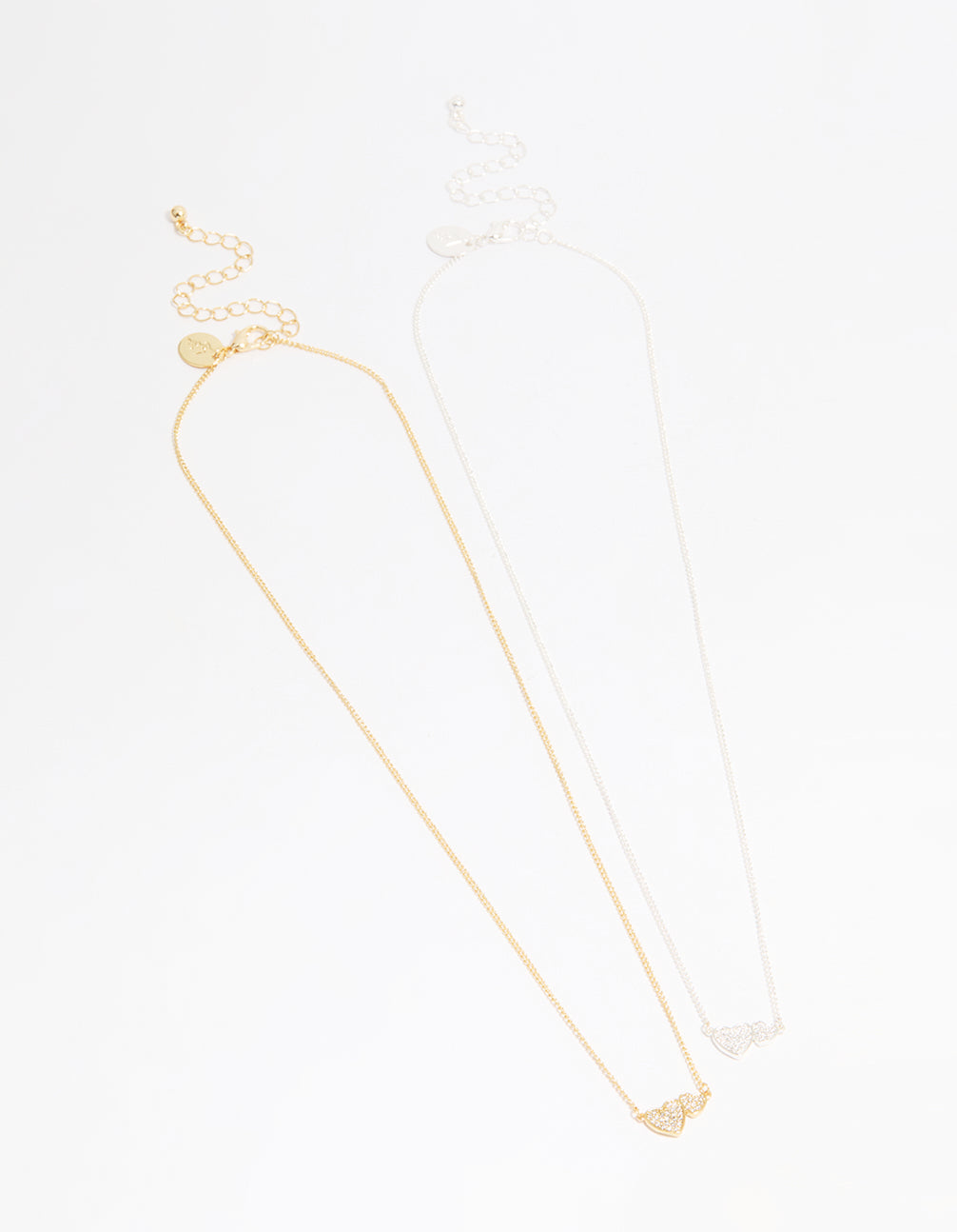 Mixed Metal Cubic Zirconia Heart Link Necklaces 2-Pack