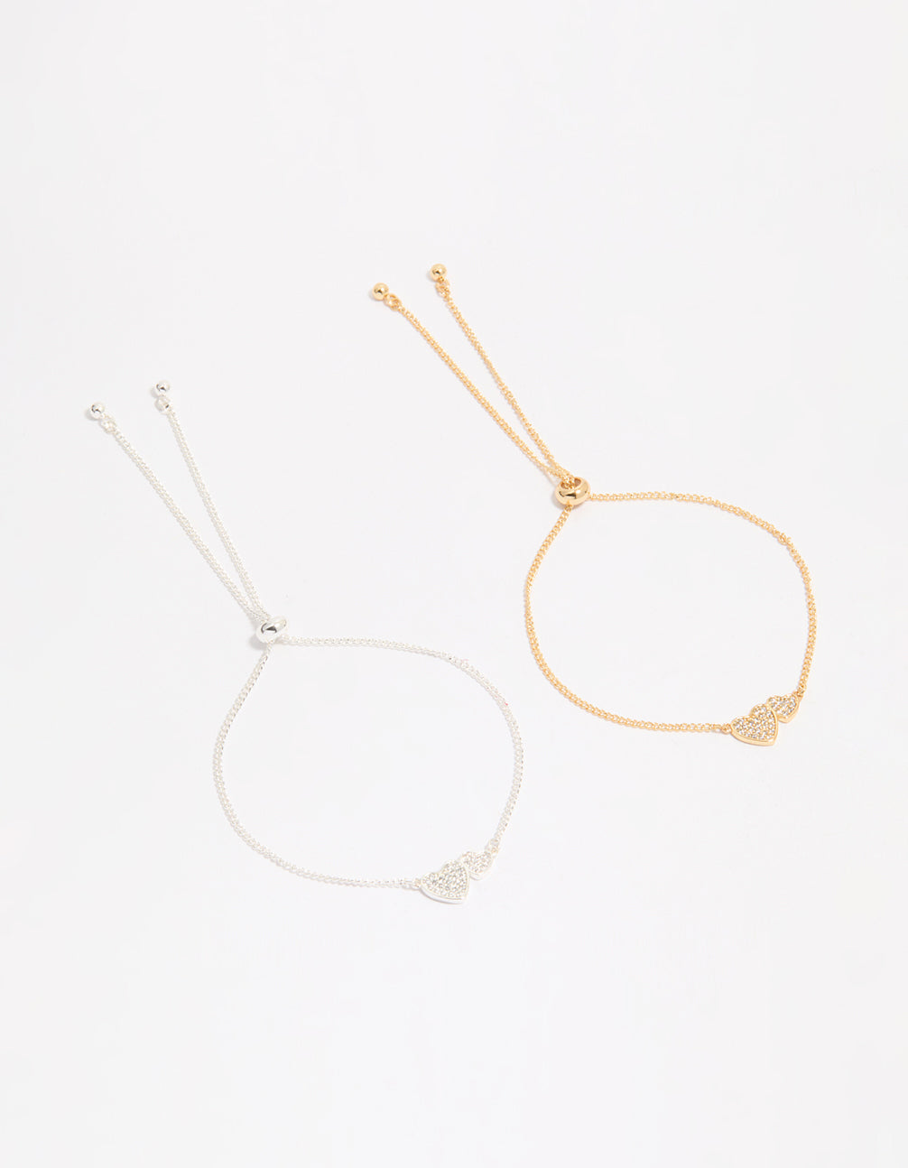Mixed Metal Cubic Zirconia Linked Hearts Toggle Bracelets 2-Pack