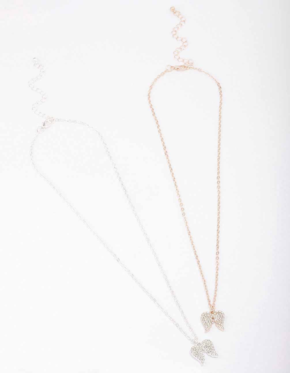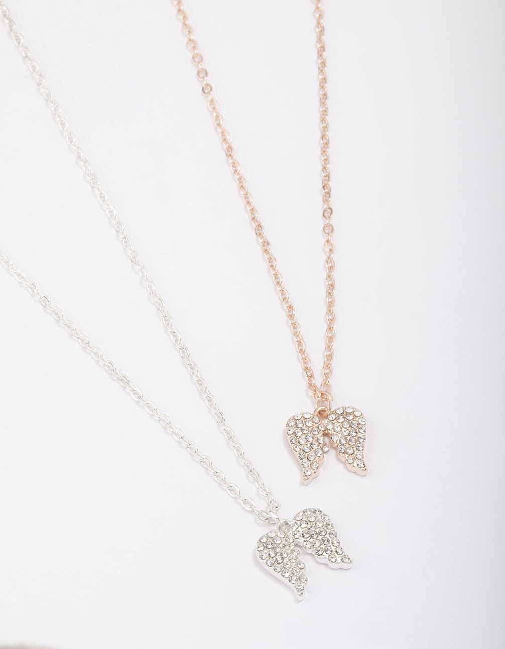 Mixed Metal Diamante Angel Wing Necklace Pack