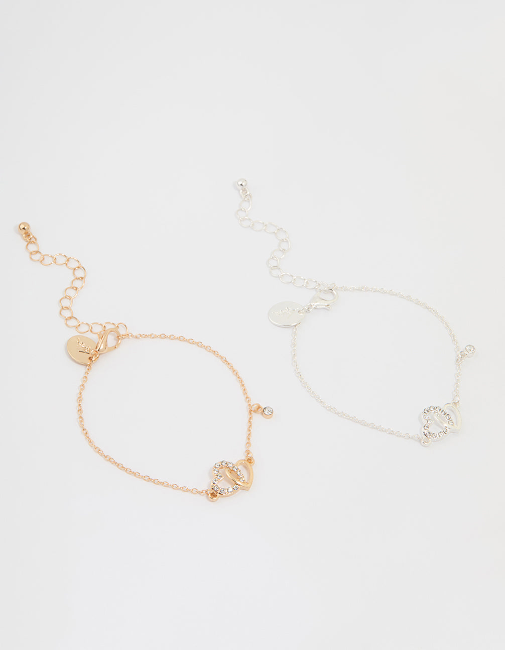 Mixed Metal Diamante Heart Link Bracelets 2-Pack