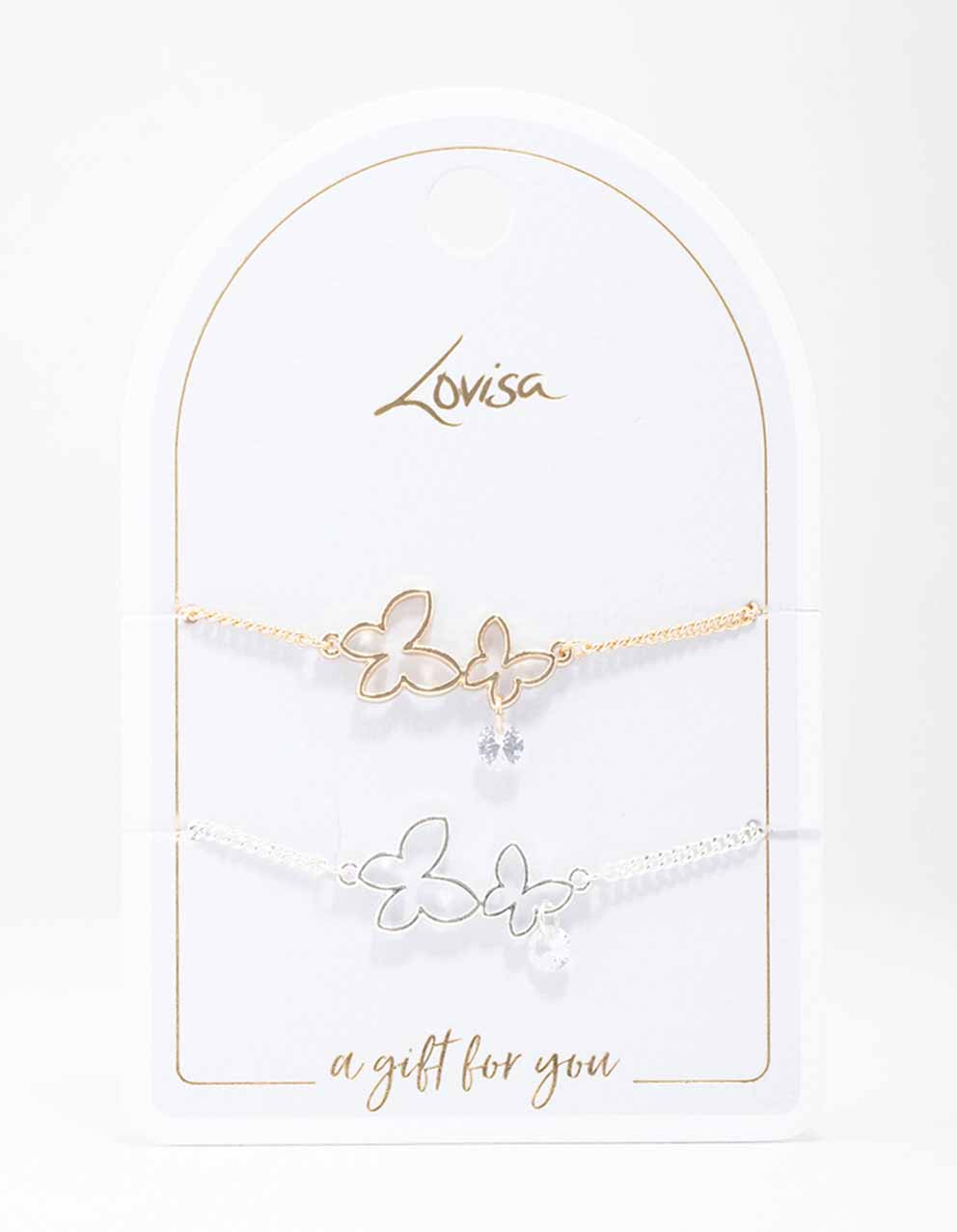Mixed Metal Double Butterfly Bracelet