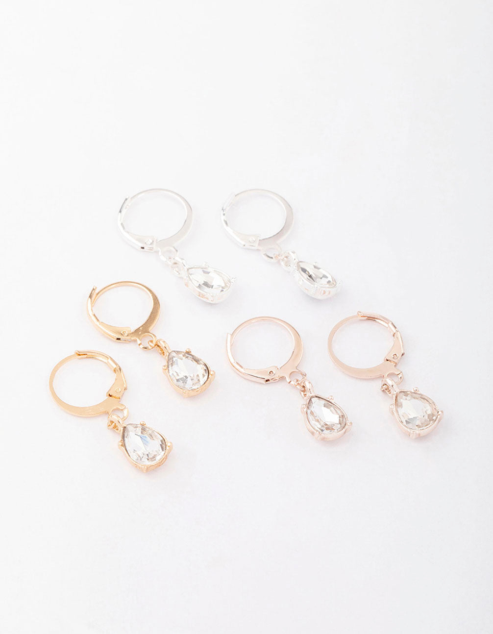 Mixed Metal Drop Pear Diamante Huggie Earring 3-Pack