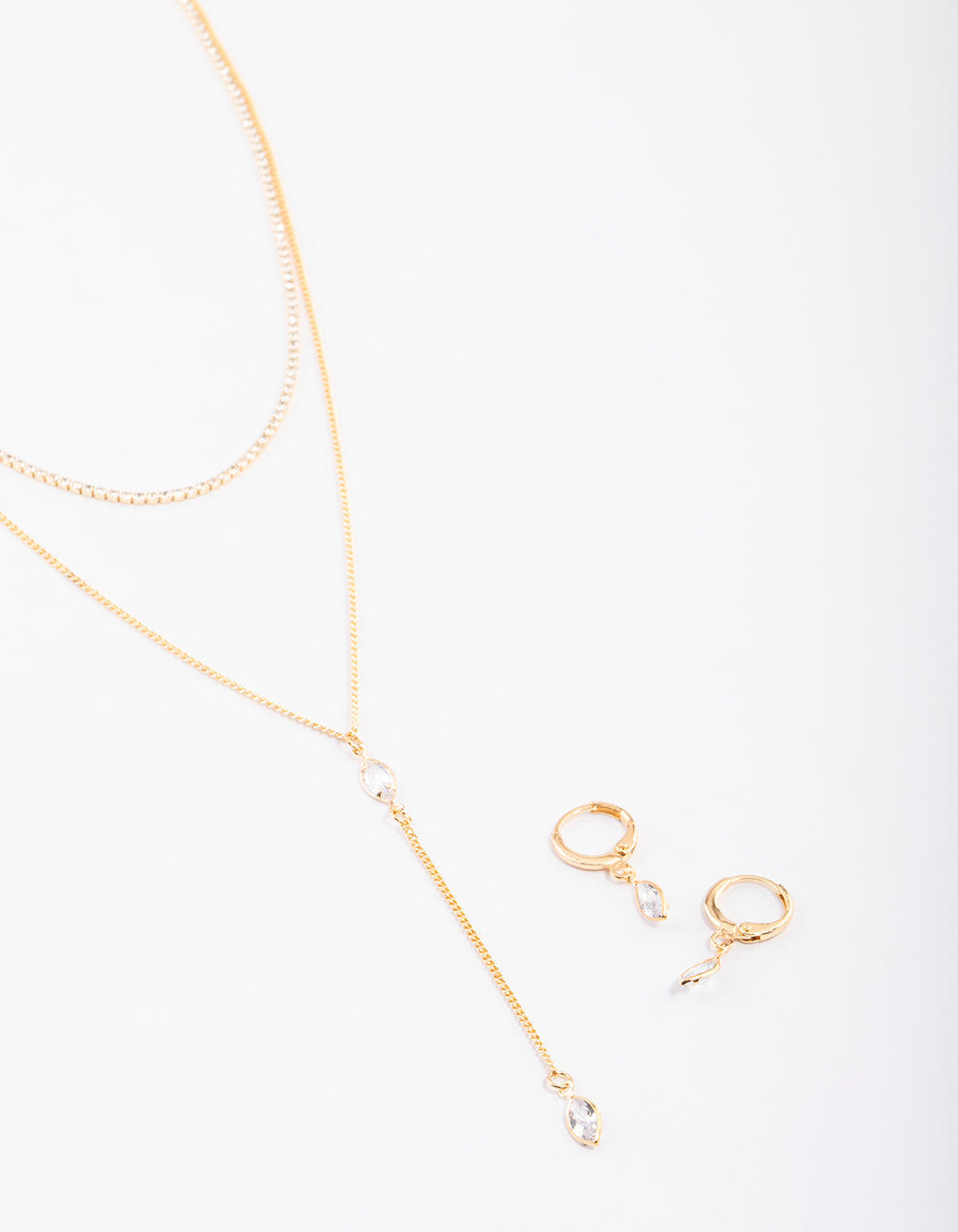 - This jewellery set features a gold layered, Y-necklace and adorning pair of earrings to match.