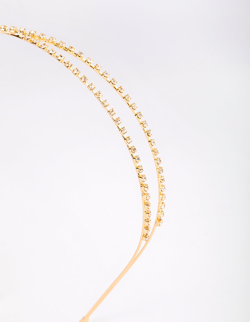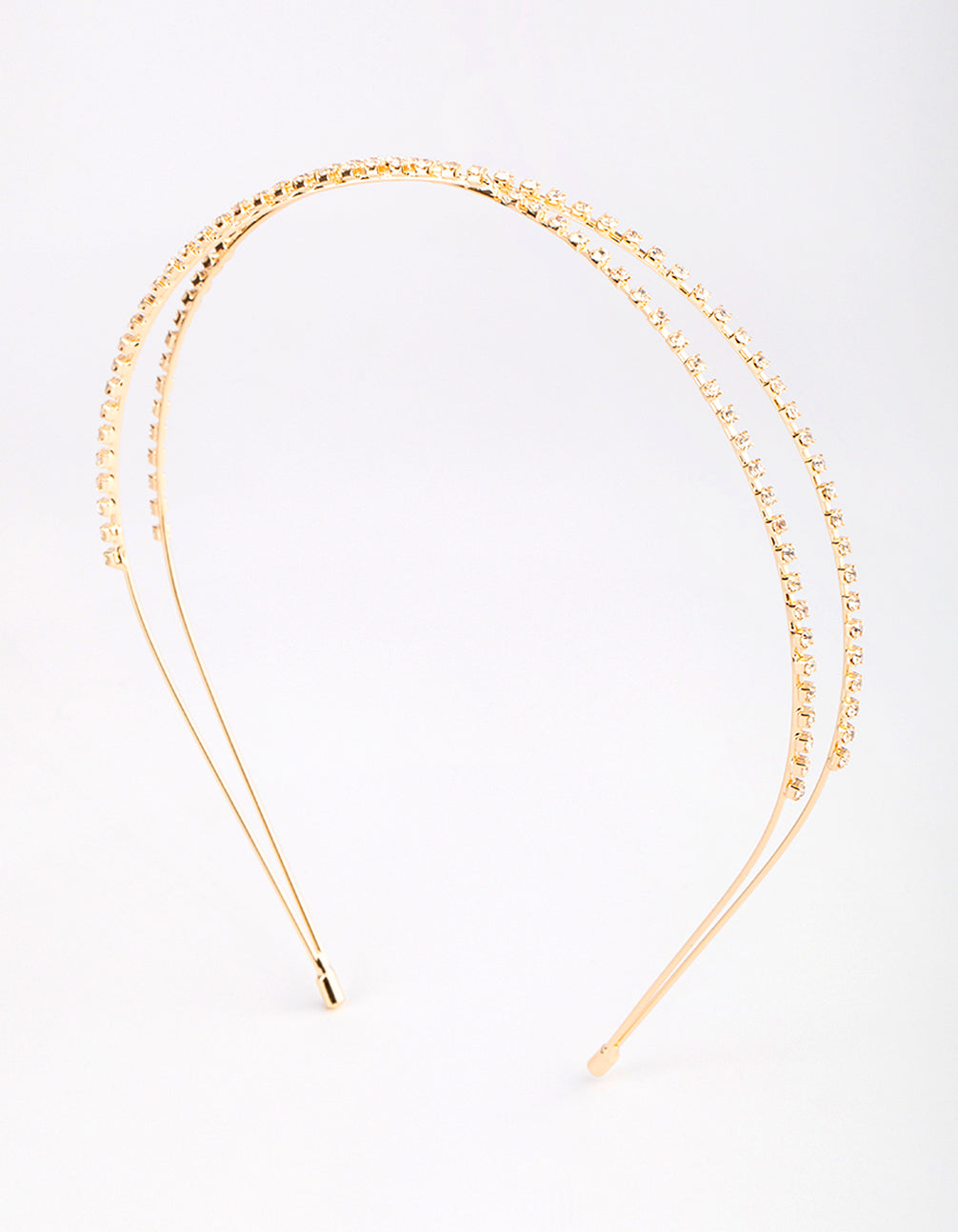 - This headband features a gorgeous gold setting with a criss-cross design, embellished with sparkly diamantes for added shine.