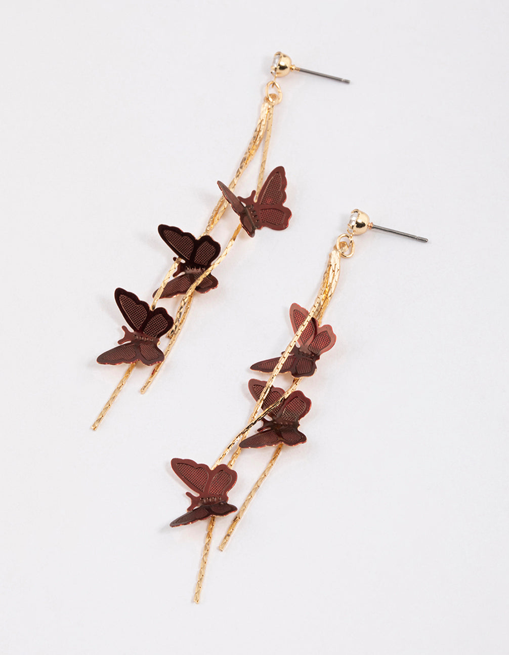 Strive for oppulence with pieces from our glamorous, Opulent Jewels Collection! These dainty, drop earrings feature delicate strands of twisted gold, embellished with small, maroon butterflies - perfect or adding a feminine touch to your look.