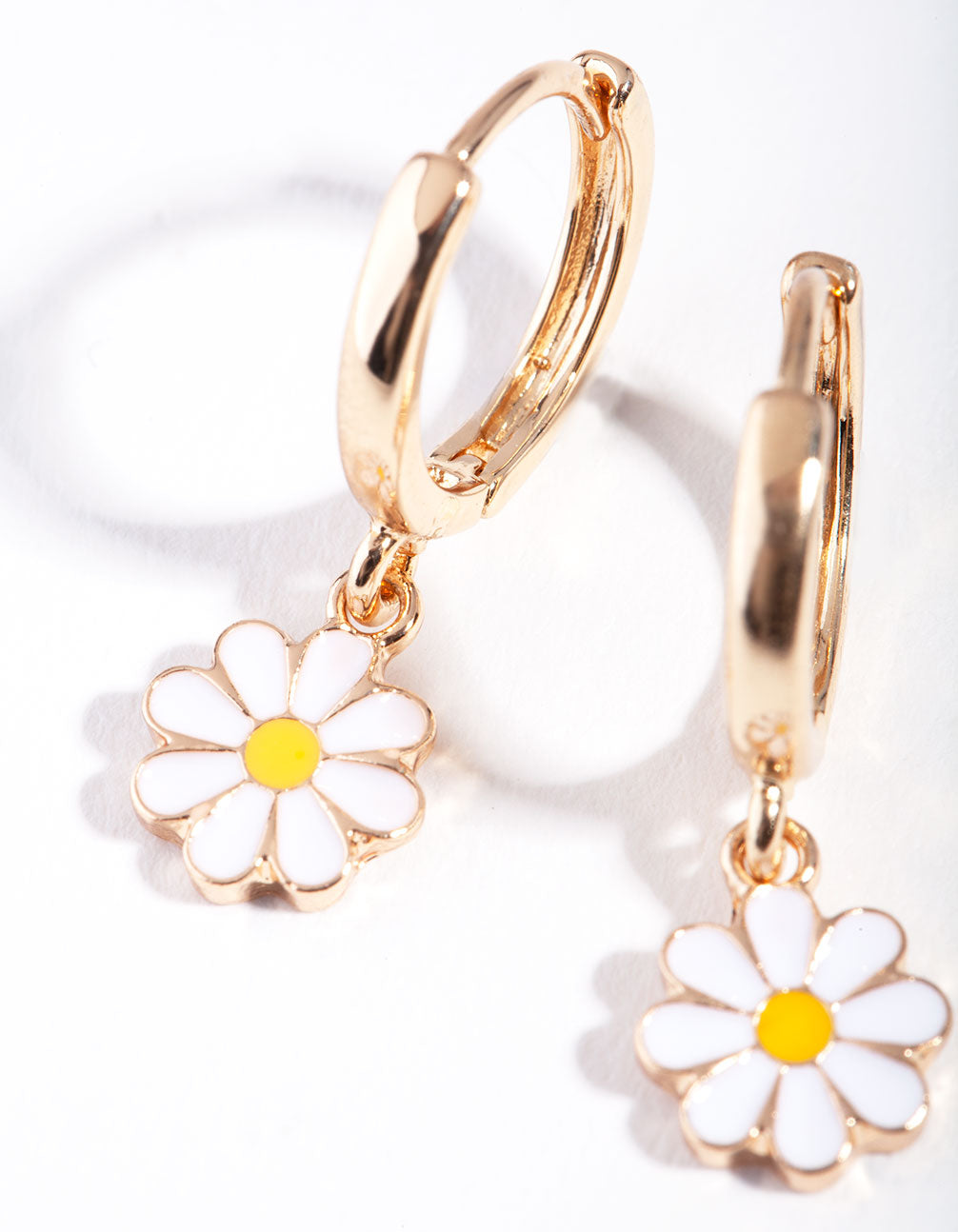 This daisy huggie earring is a must-have for any accessory lover! This gold-toned earring features a fresh white and yellow daisy drop design which looks perfect stacked with others or worn solo.