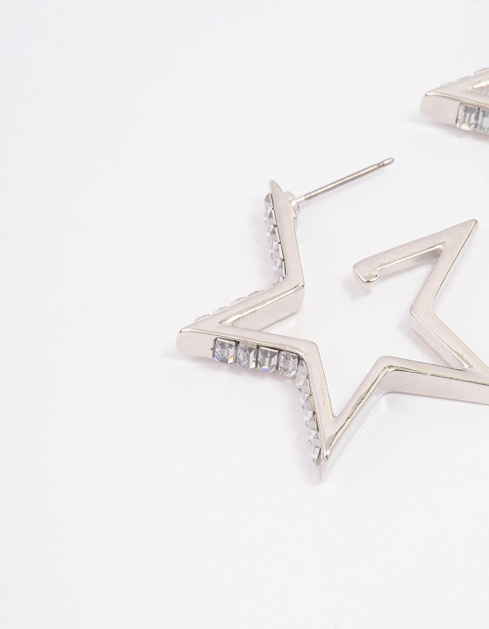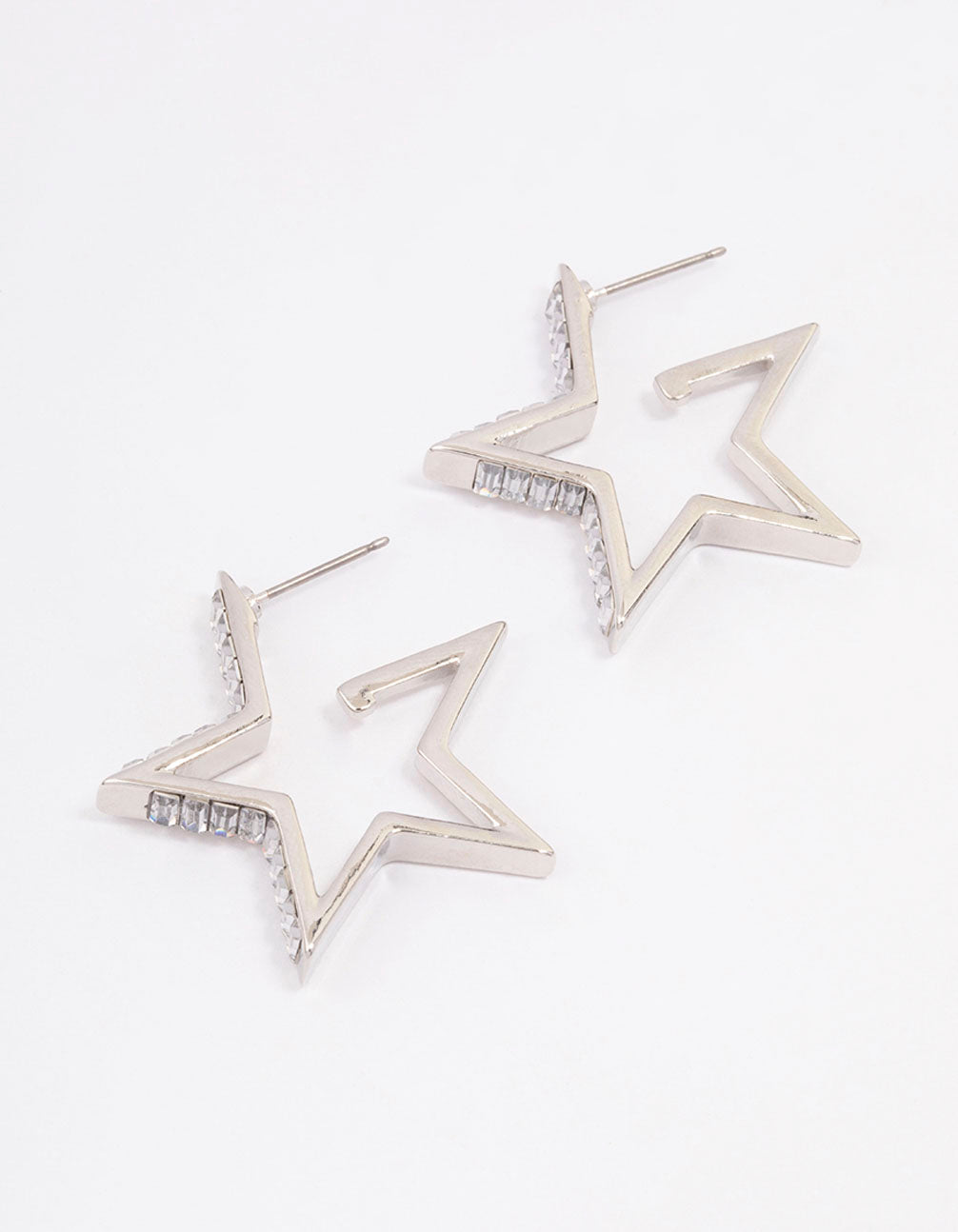 - Discover our collection of event and party ready pieces, including these Silver Baguette Diamante Star Hoop Earrings.