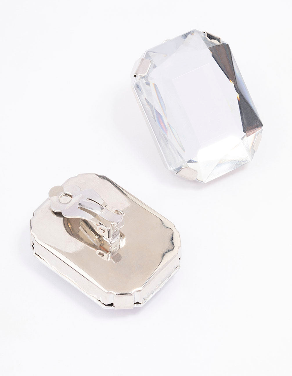 - This set of clip on earrings features a silver-toned setting, encrusted with large diamantes for an eye-catching finish.