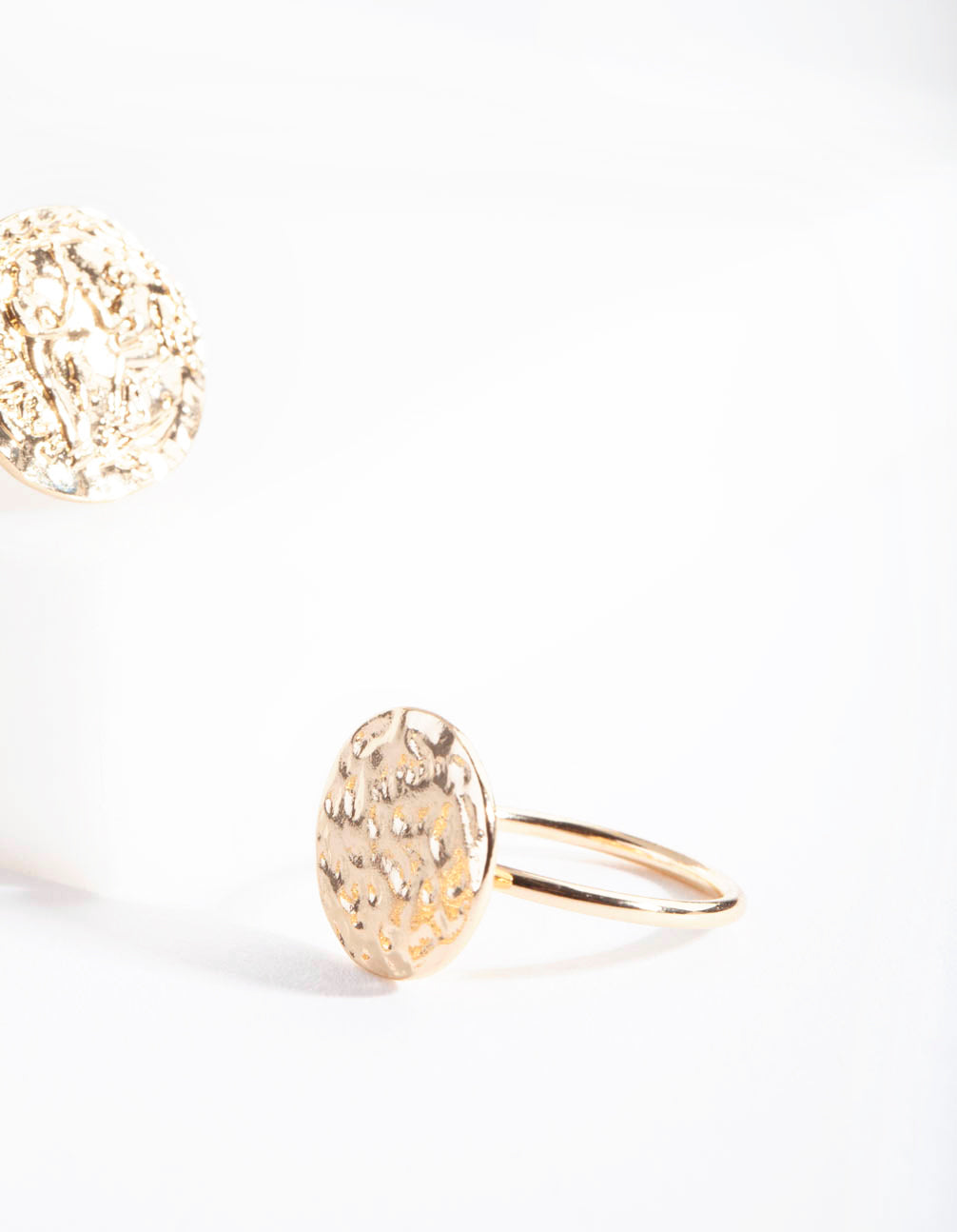 This gold tone ring pack boasts a textured disc design. Stack all five along your hand or wear individually to spice up your look.