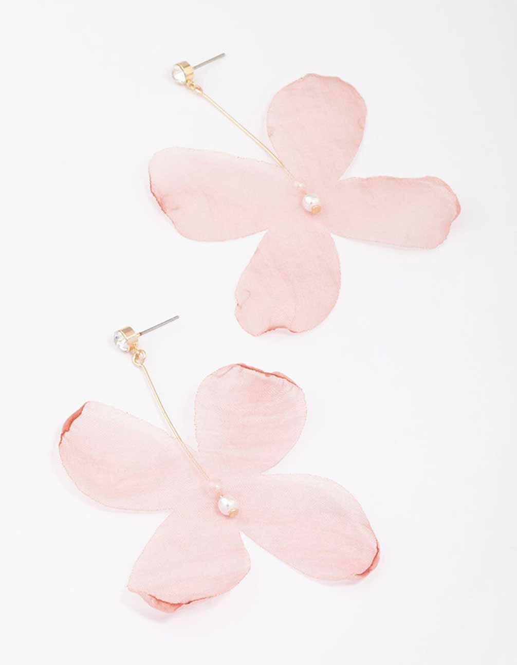 Pink Diamante & Pearl Fabric Flower Drop Earrings