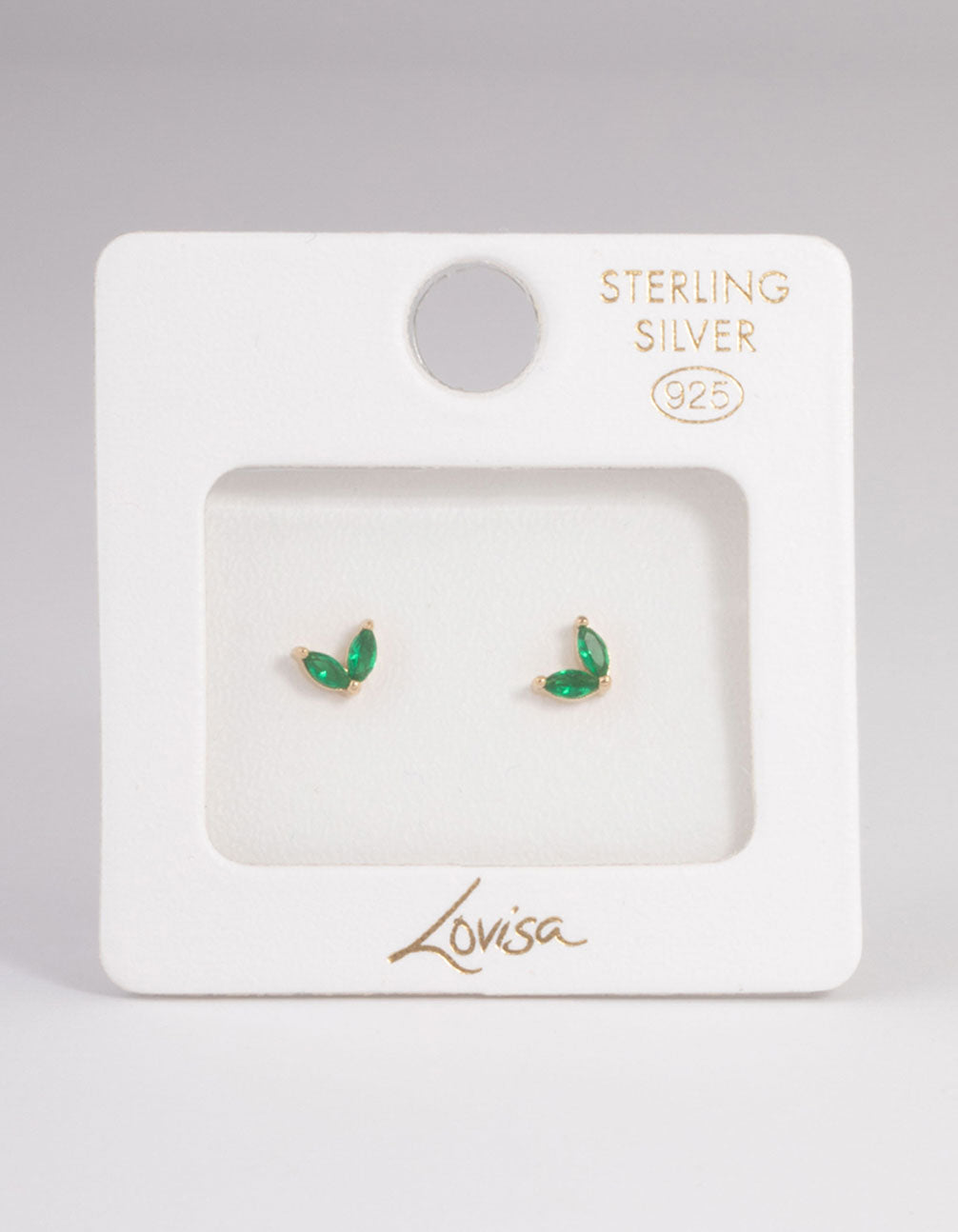 Gold Plated Sterling Silver Cubic Zirconia Dolphin Tail Stud Earrings