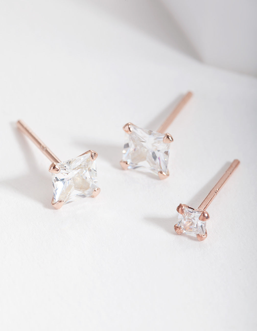 This rose gold plated sterling silver pack features princess cut cubic zirconia studs.