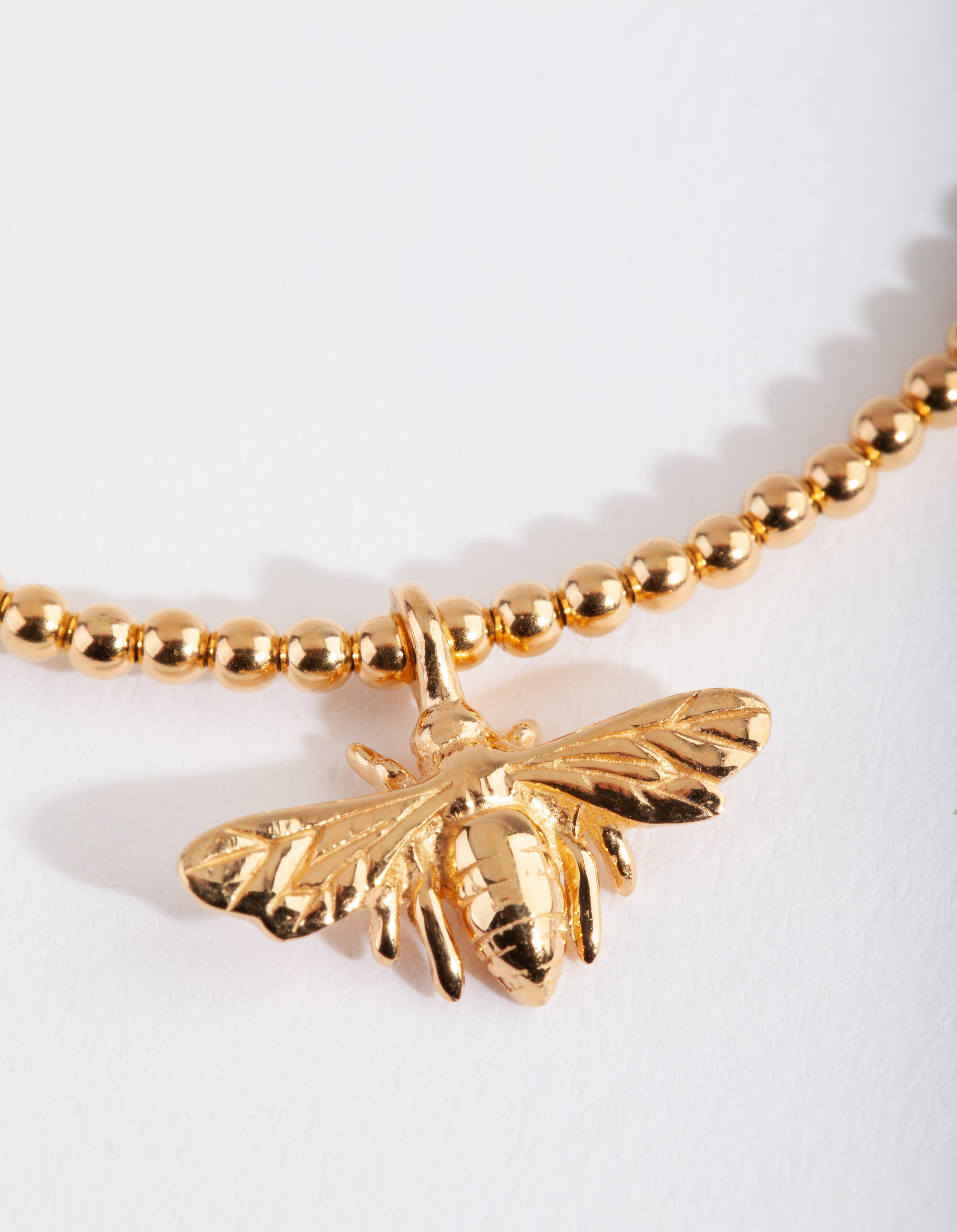 This gold plated sterling silver stretch bracelet boasts a 3D bee pendant.