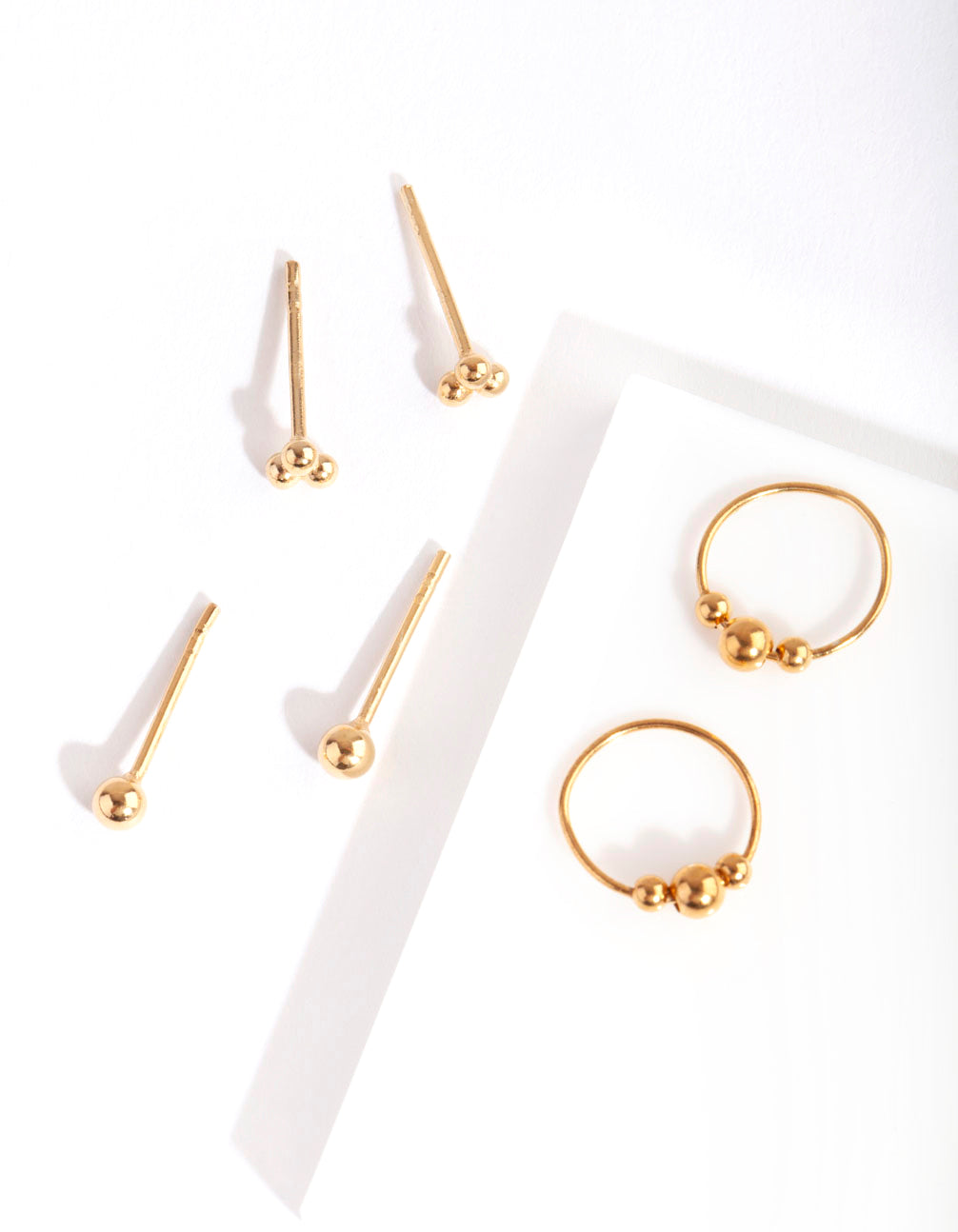Gold plated sterling silver styles are a great way to round out your collection. This earring pack features ball hoop and stud designs.