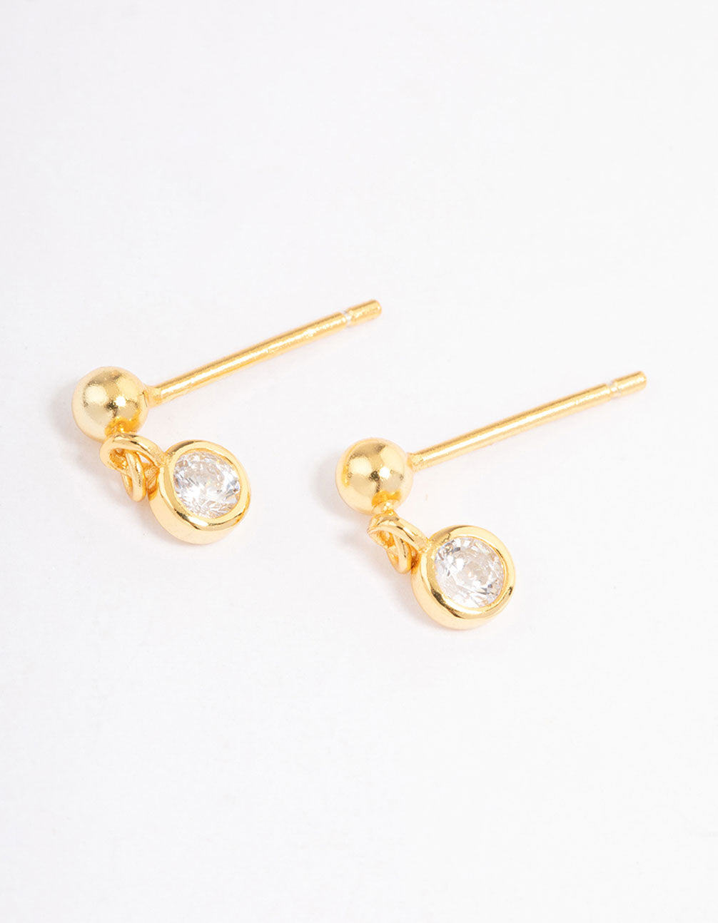 Gold Plated Sterling Silver Cubic Zirconia Bezel Charm Earrings
