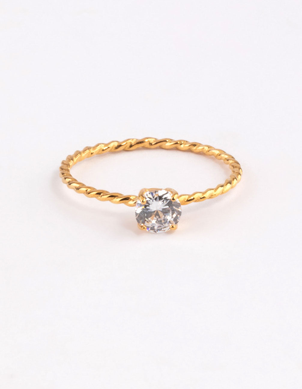 - Our Gold Sterling Plated Cubic Zirconia Twist Engagement Ring is crafted with genuine gold plating for long-lasting wear.