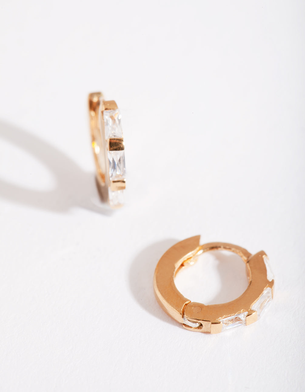 Gold Plated Sterling Silver Gem Huggie Earrings