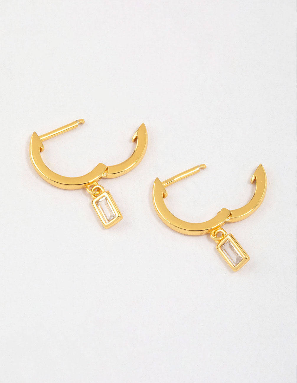 Gold Plated Sterling Silver Cubic Zirconia Baguette Drop Earrings