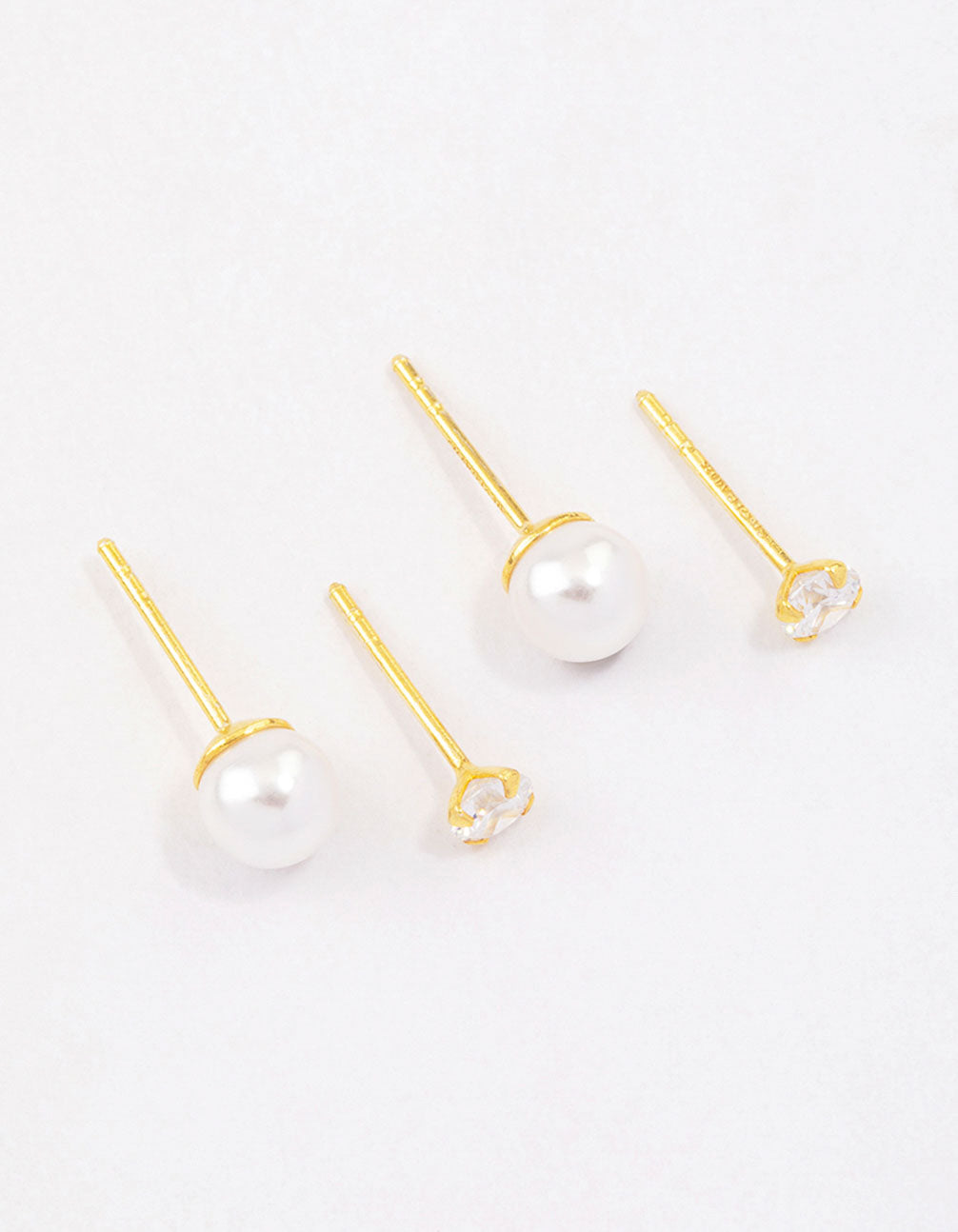 Gold Plated Sterling Silver Pearl & Cubic Zirconia Stud Earring Pack