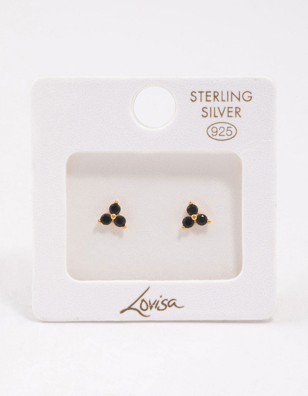 Gold Plated Sterling Silver Triangular Round Cubic Zirconia Stud Earrings