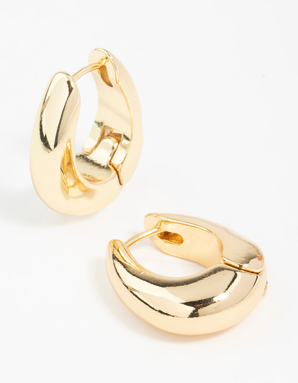 Gold Plated Chunky Oval Huggie Hoop Earrings