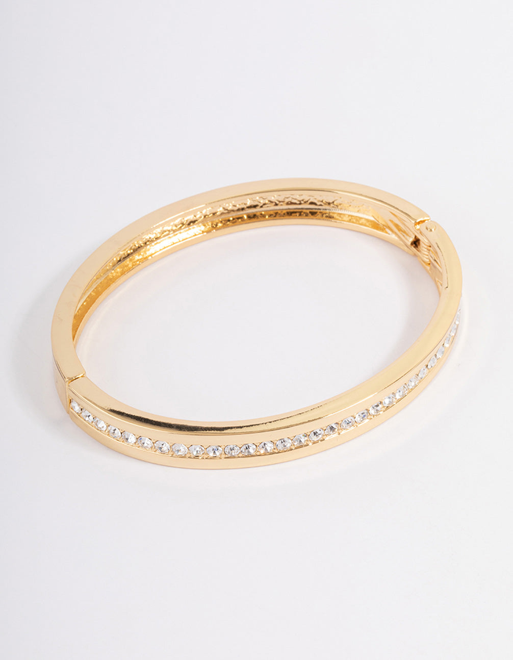 Style this Gold Plated Classic Diamante Hinge Bangle with a simple pendant necklace for a modern look.