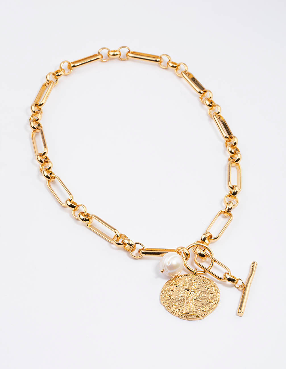 - Style this Gold Plated Mixed Link Pearl & Disc Necklace with a set of mixed link bracelets for a coordinated finish.