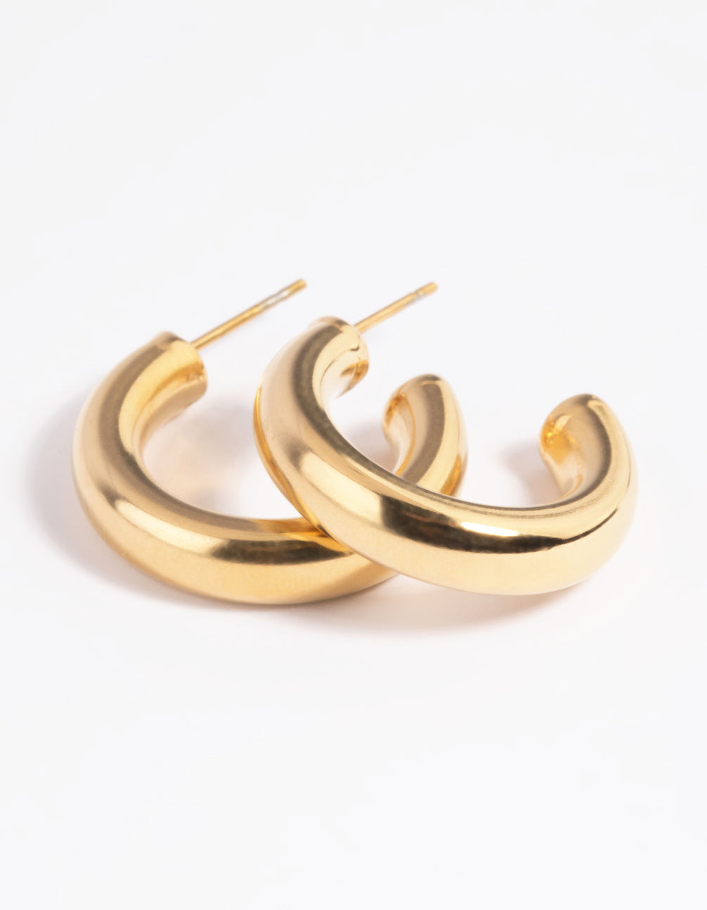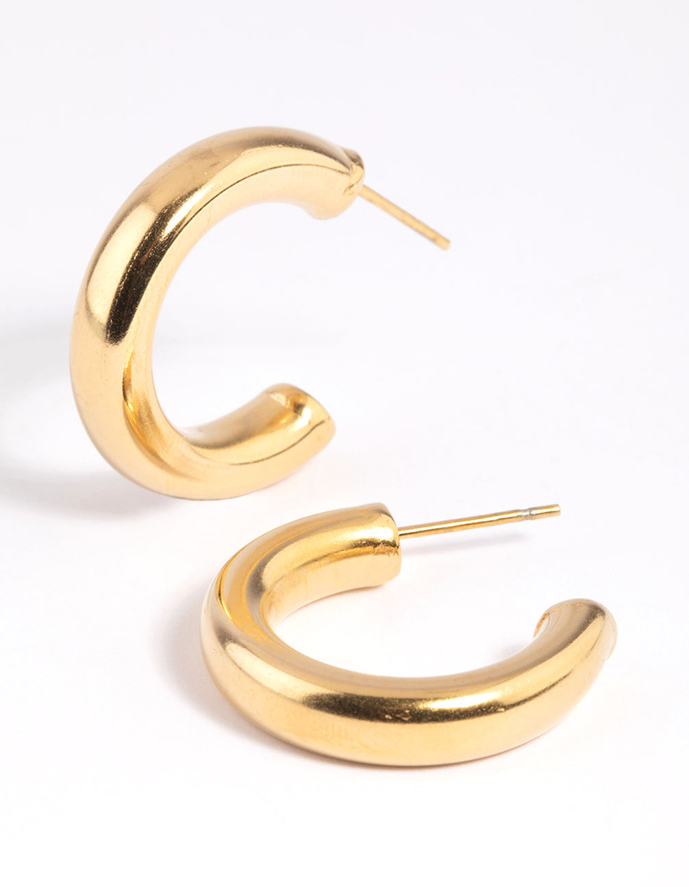 Waterproof Gold Plated Stainless Steel Medium Chunky Hoop Earrings