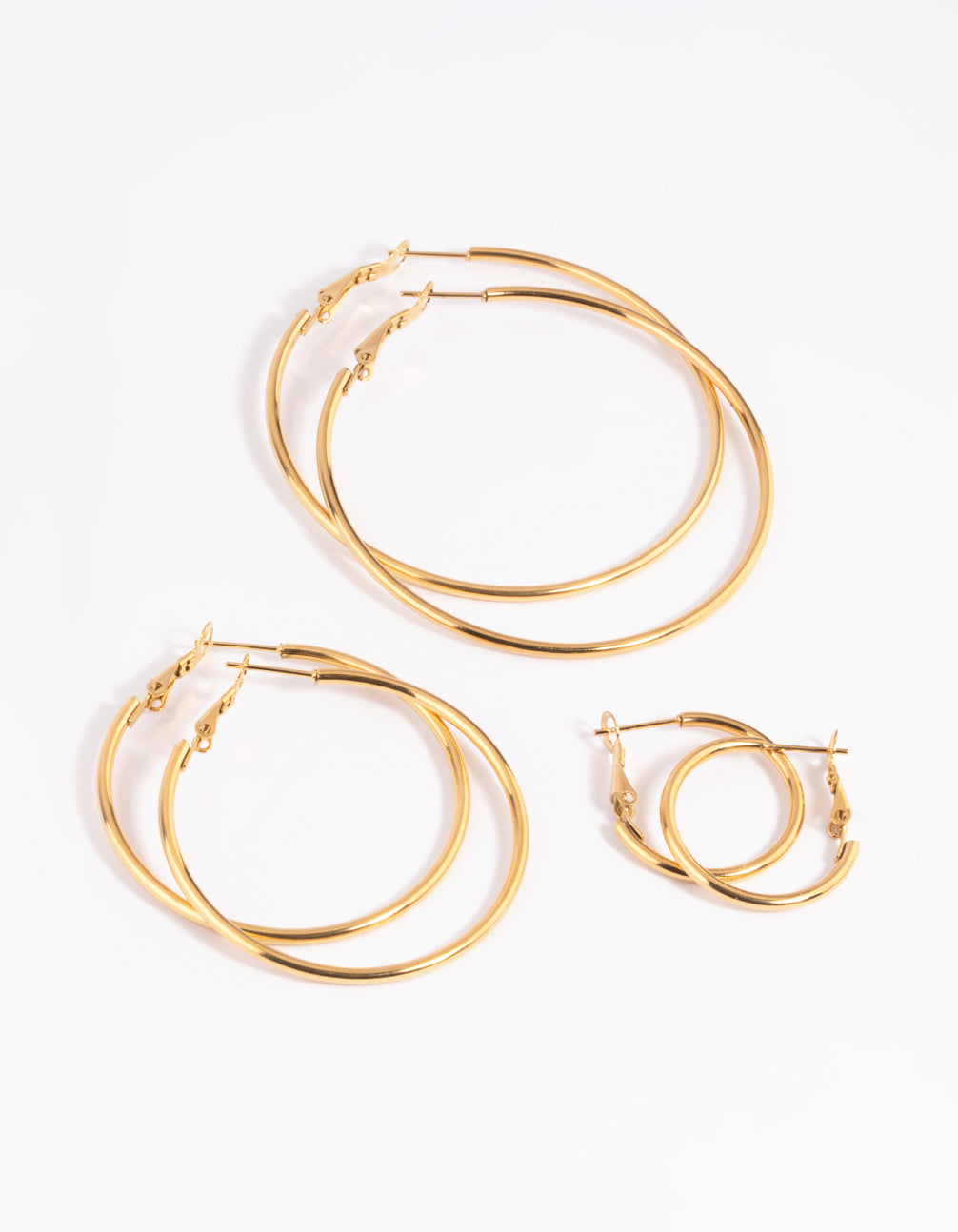 Waterproof Gold Plated Stainless Steel Thin Hoop Earring Pack
