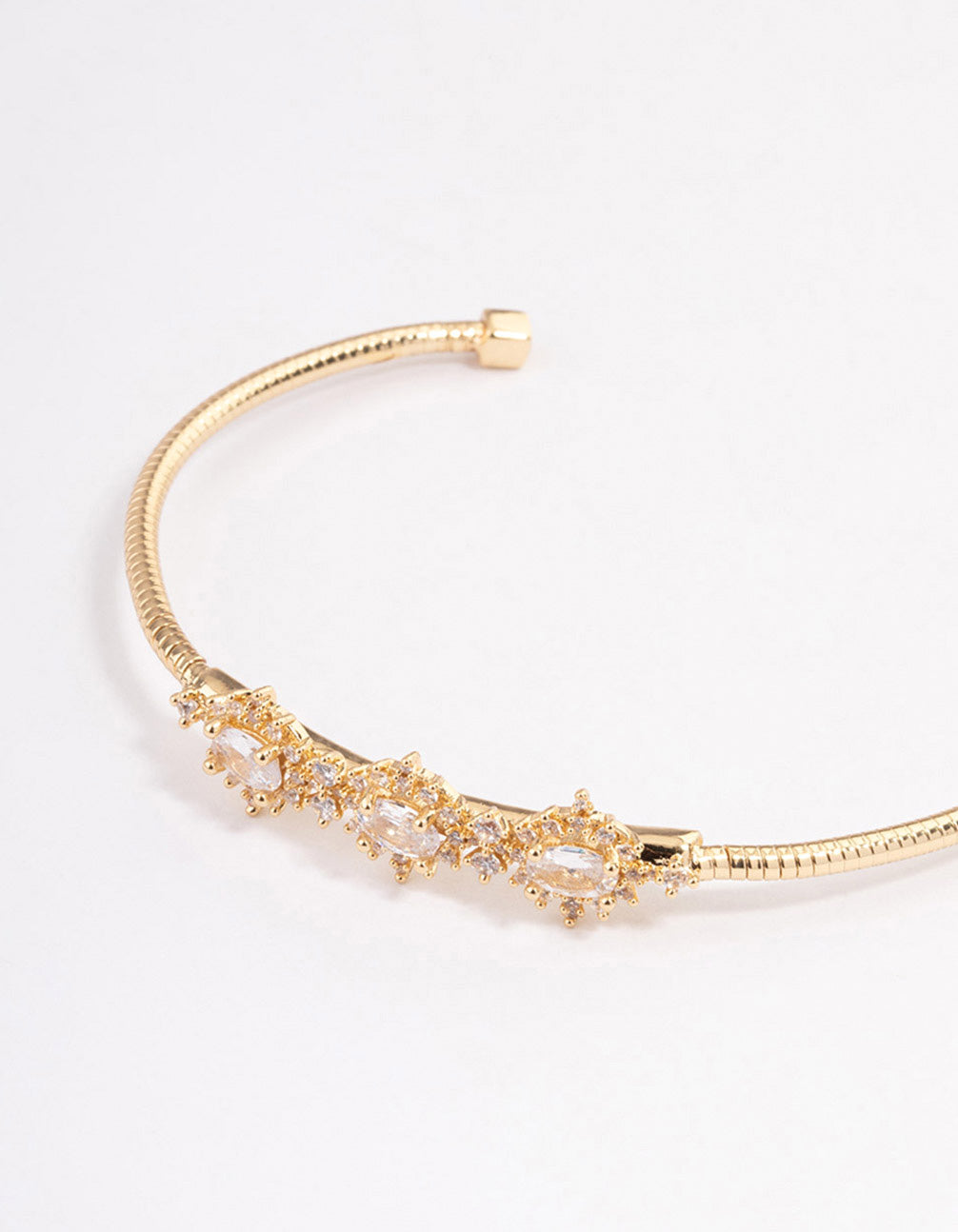 Gold Plated Cubic Zirconia Trio Flower Wrist Cuff