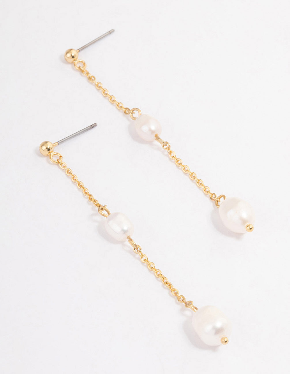 Gold Plated Long Chain Freshwater Pearl Stud Earrings Gold Plated Long Chain Freshwater Pearl Stud Earrings Gold Plated Long Chain Freshwater Pearl Stud Earrings