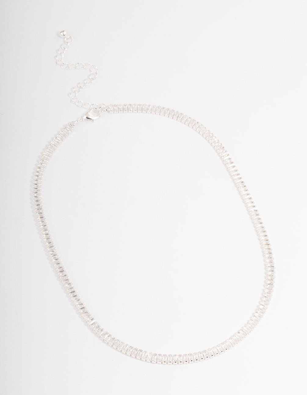 Silver Plated Cubic Zirconia Baguette Cup Chain Necklace