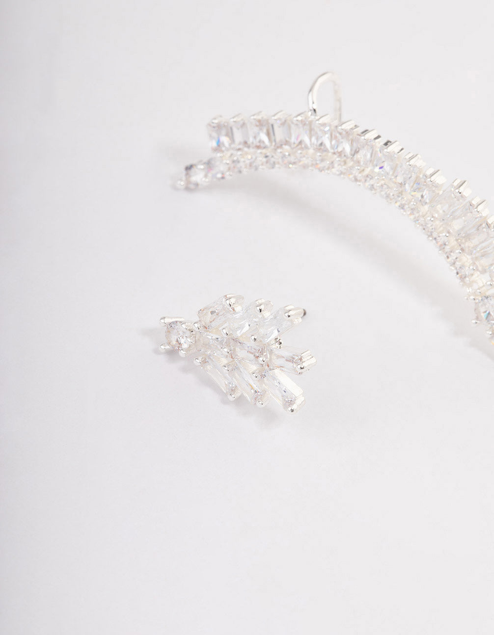 These silver, cubic zirconia baguette cuff stud earrings are perfect for brides and bridesmaids on the big day.