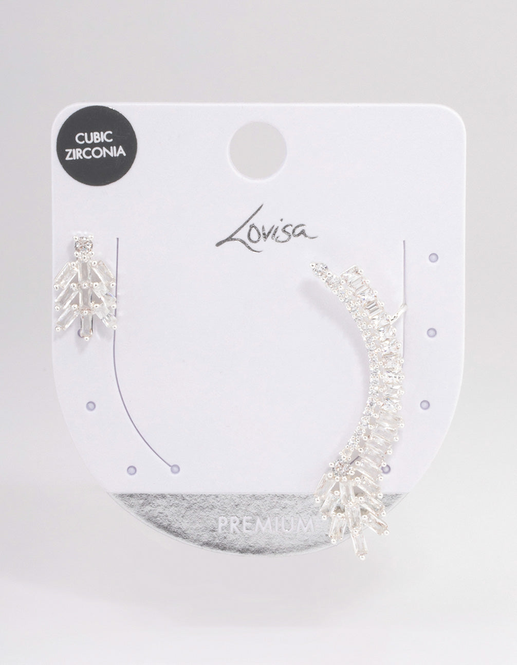 Silver Plated Cubic Zirconia Baguette Cuff Stud Earrings