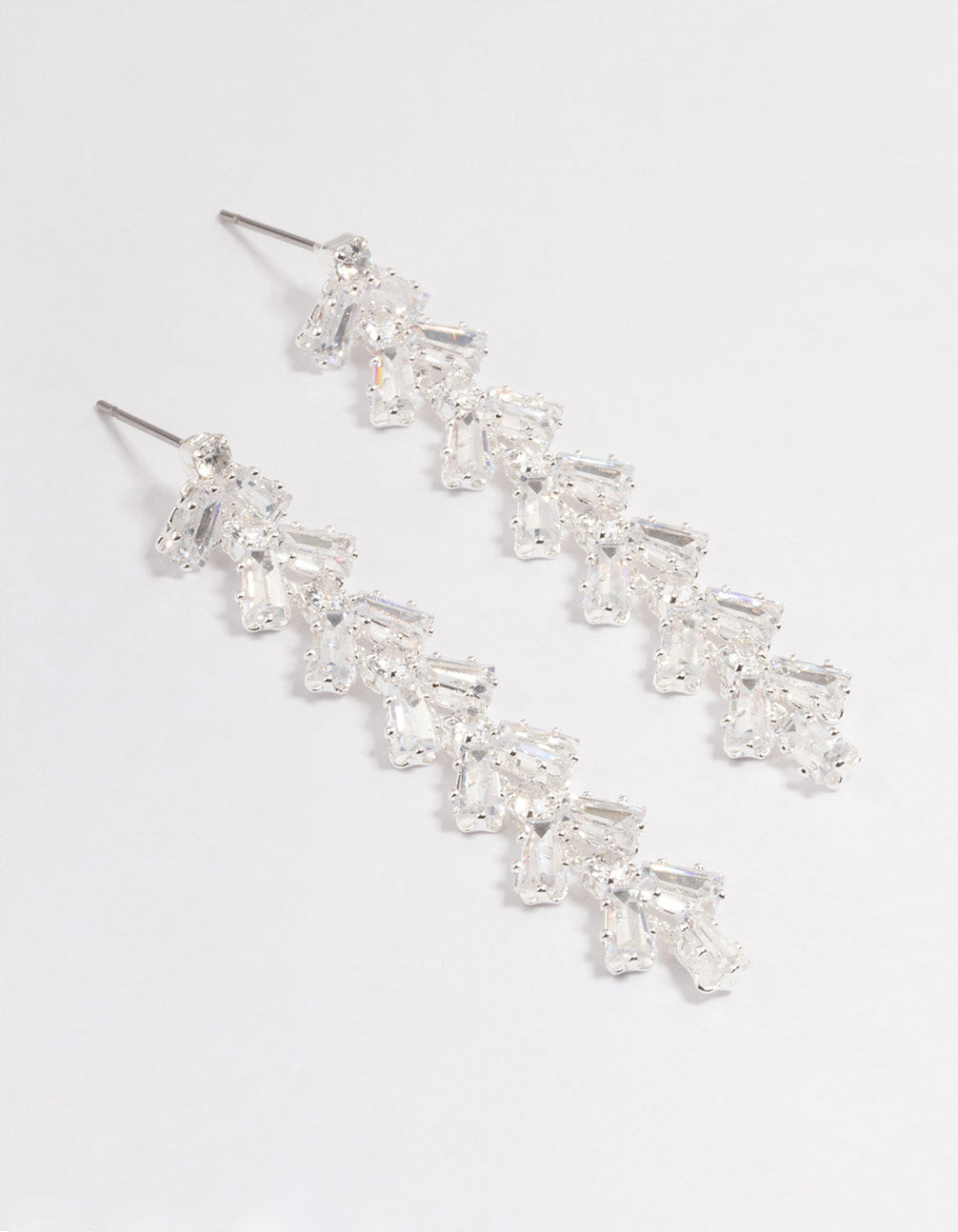 Silver Plated Cubic Zirconia Baguette Vine Drop Earrings
