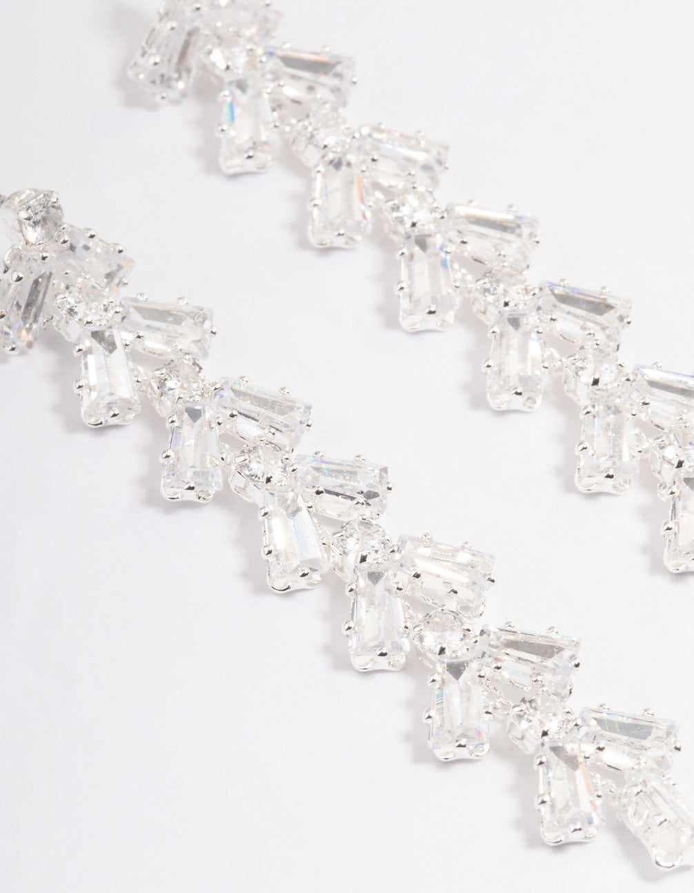 These silver, cubic zirconia baguette vine drop earrings are perfect for brides and bridesmaids on the big day.