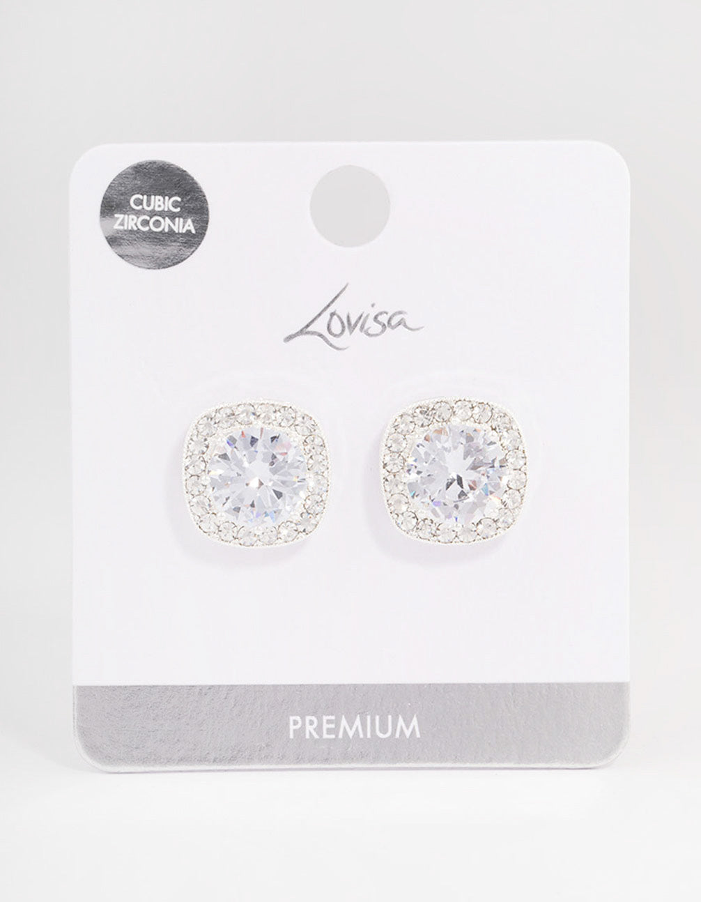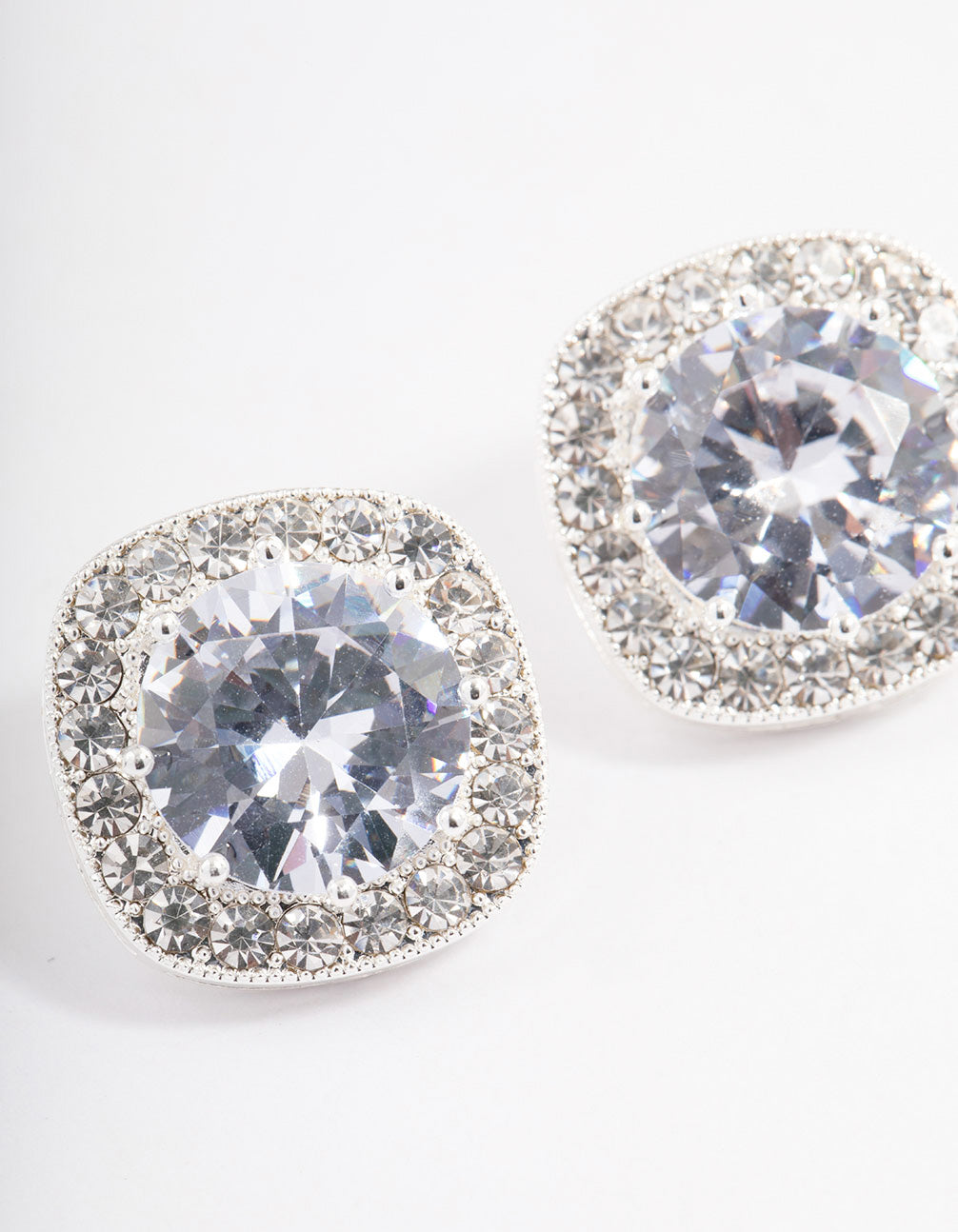 Silver Plated Cubic Zirconia Cushion Halo Stud Earrings Silver Plated Cubic Zirconia Cushion Halo Stud Earrings Silver Plated Cubic Zirconia Cushion Halo Stud Earrings