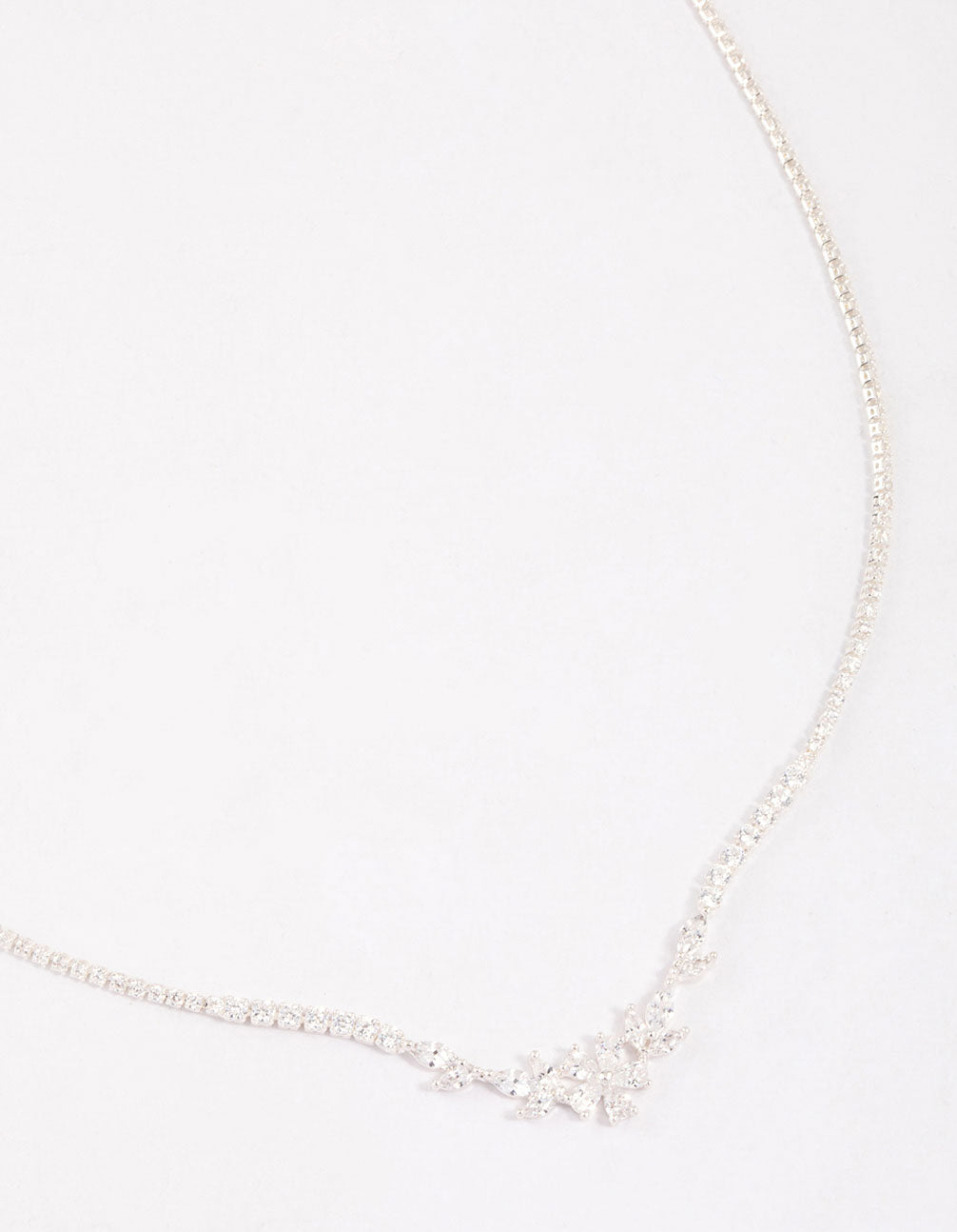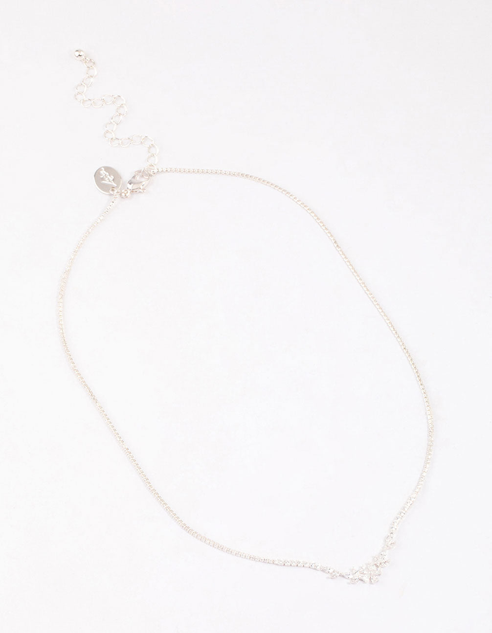 Silver Plated Cubic Zirconia Dainty Cup Chain Floral Necklace