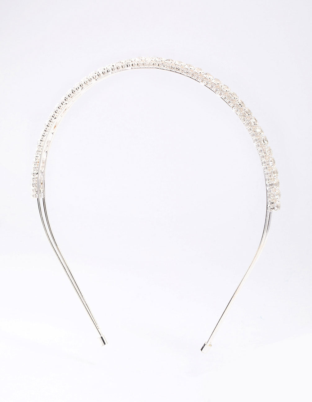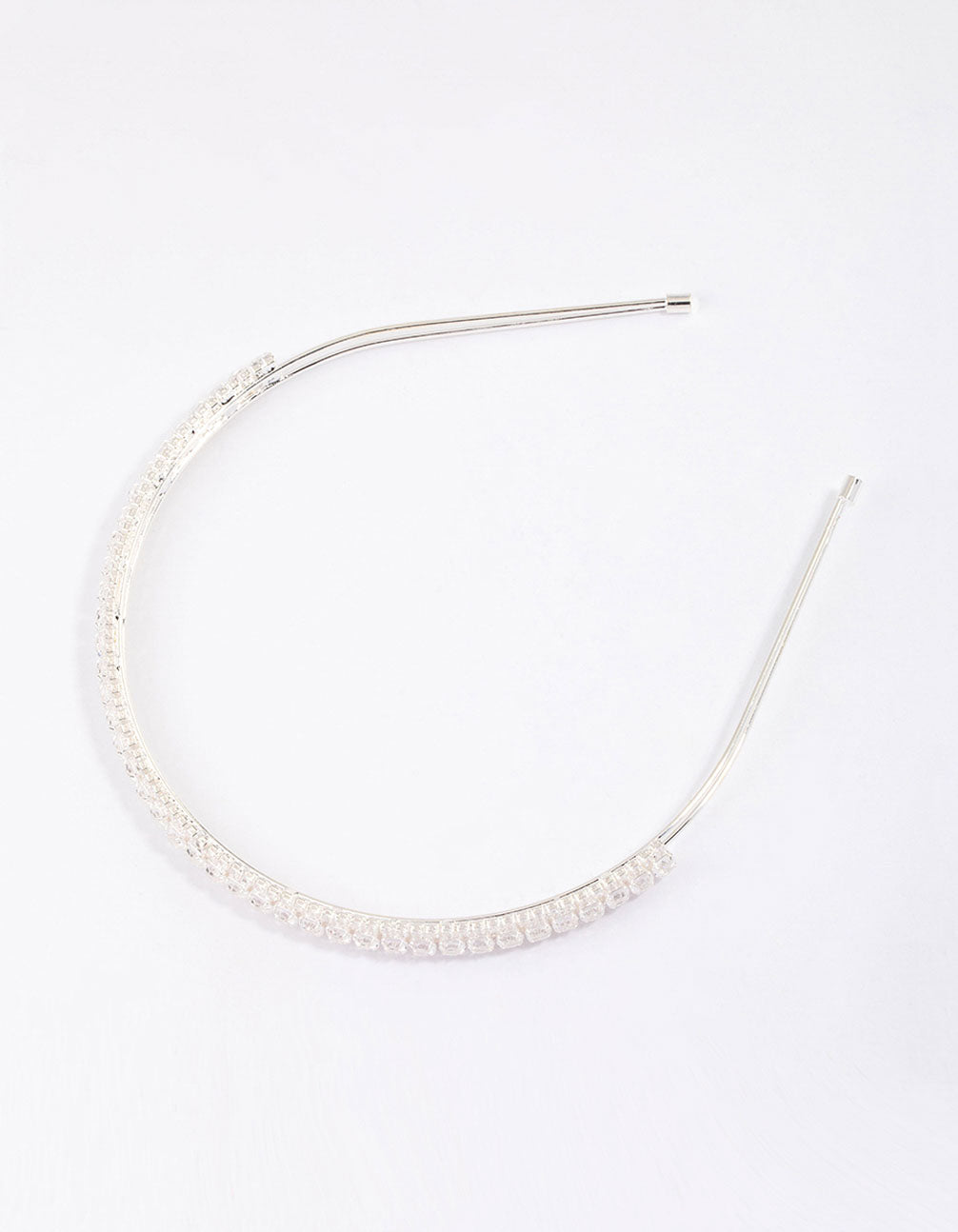 - This simple silver headband features encased, cubic zirconia crystals for a glamorous finish to your outfit.