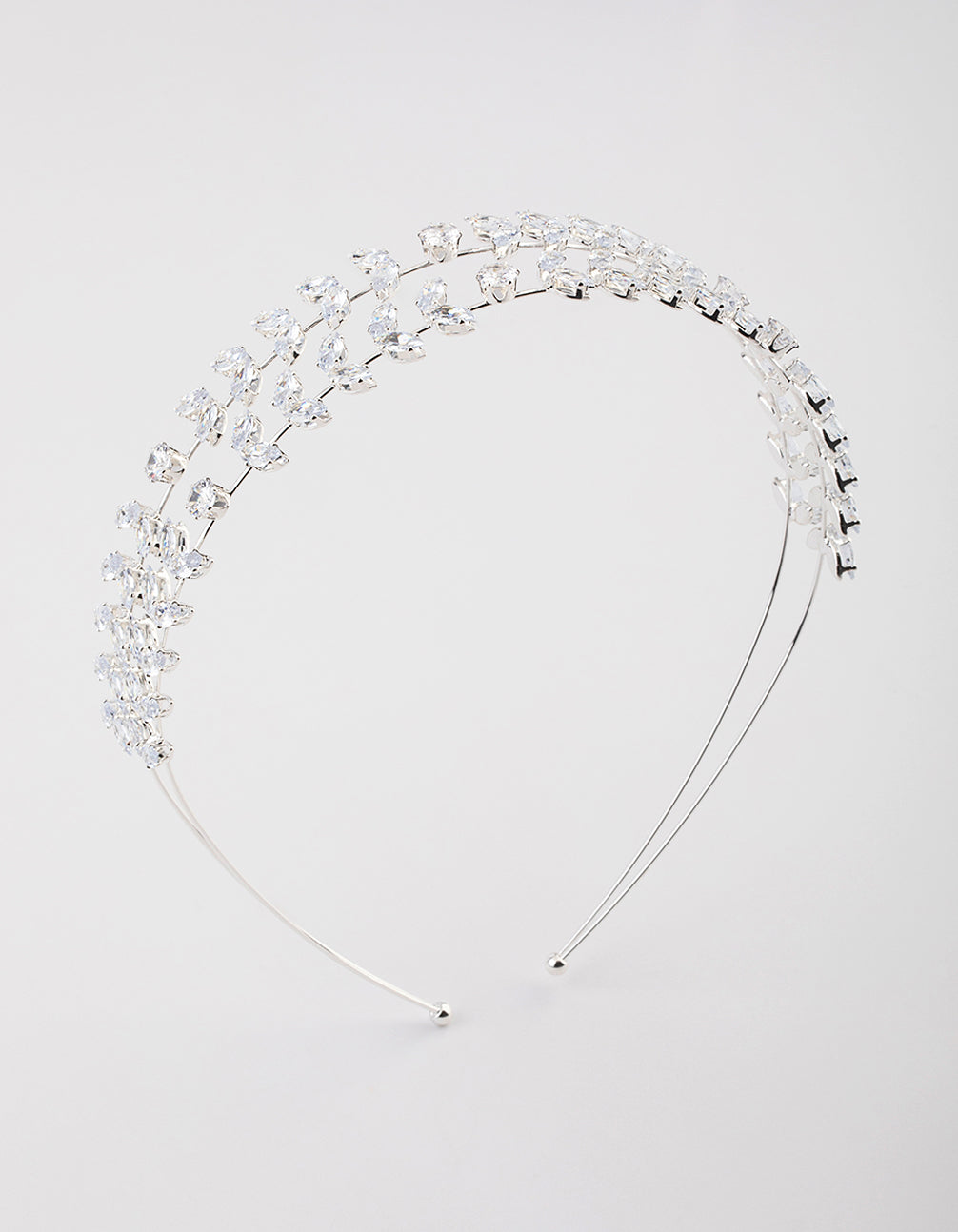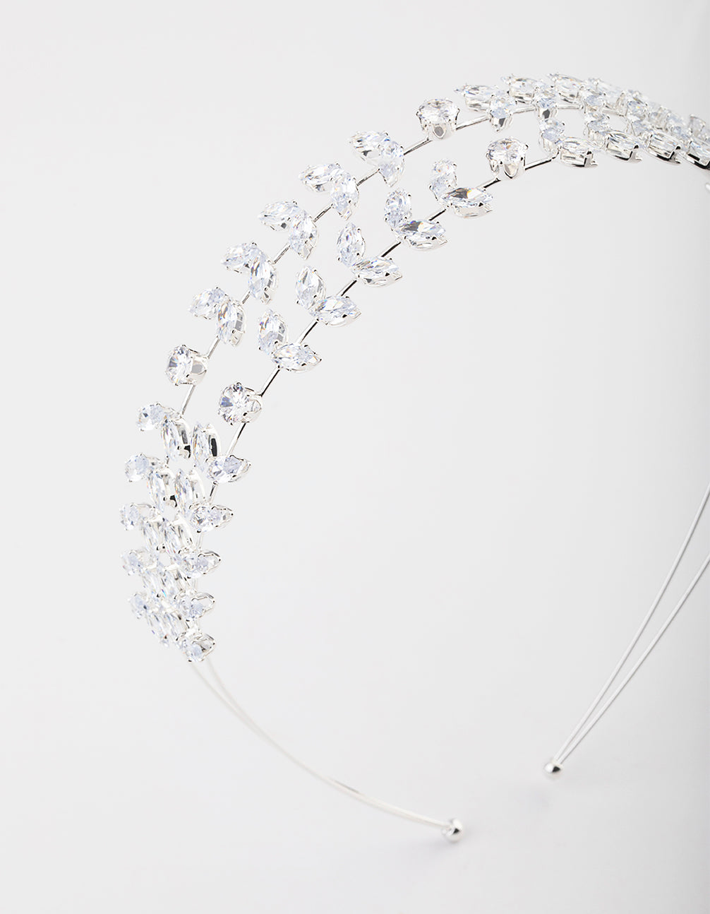 - This dainty headband features a silver setting and double row design, embellished with leaves for a whimsy look.