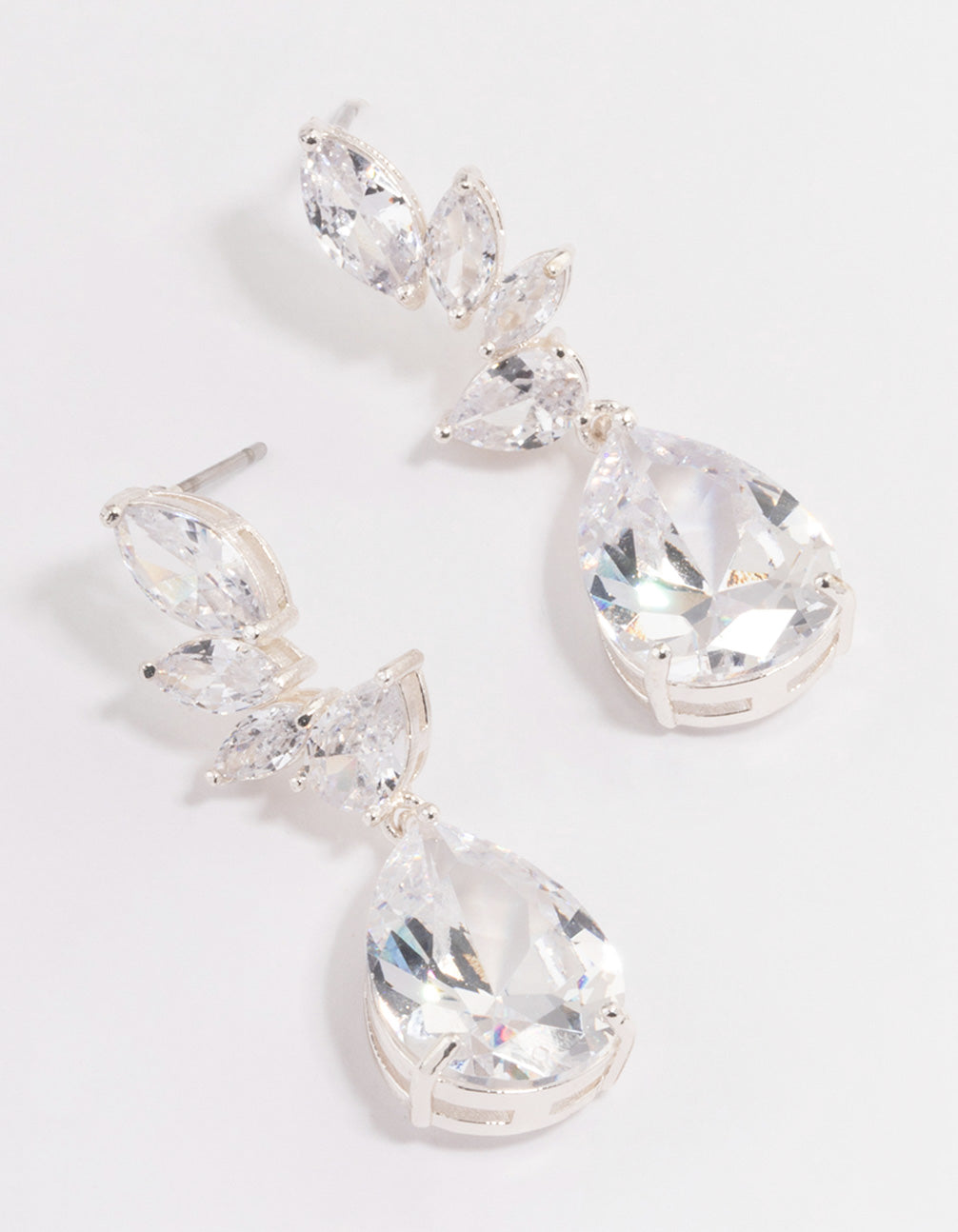 These silver, cubic zirconia fan drop earrings are perfect for brides and bridesmaids on the big day.