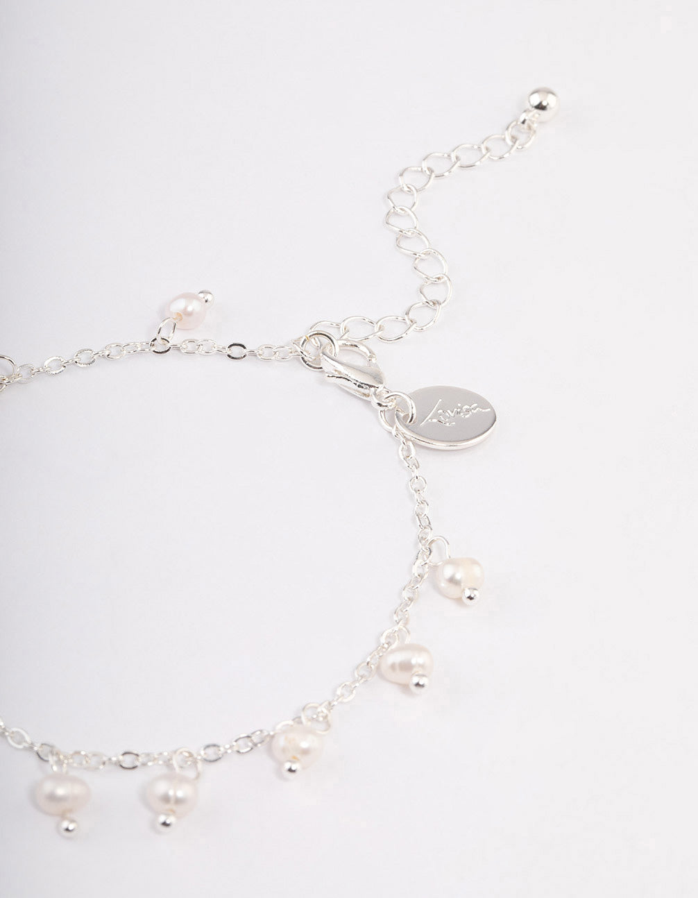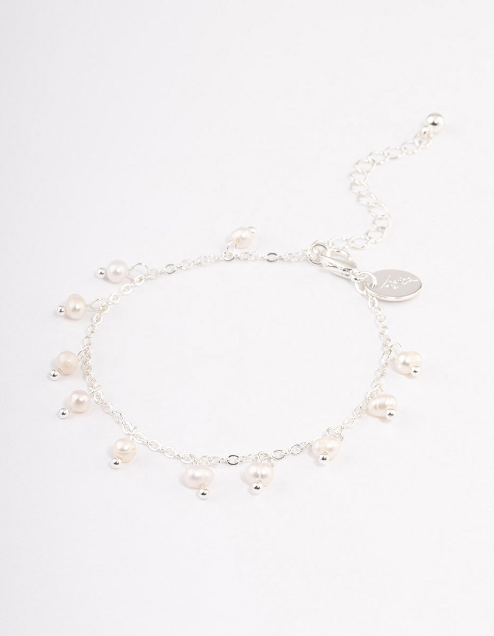 This bracelet features a stunning silver setting and features droplets of pearls for an elegant finish.