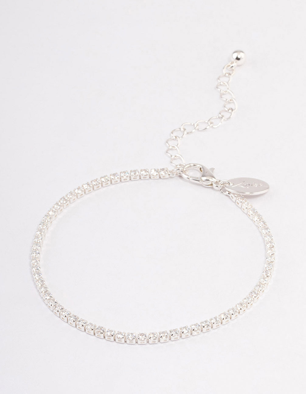 This dainty bracelet features a stunning silver setting with a tennis bracelet silhouette.