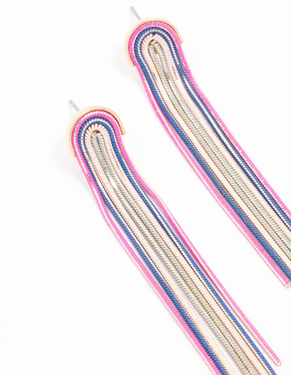 Add a colourful touch to your stack with these waterfall-inspired drop earrings. These unique statement earrings, feature a collection of colourful strands for a decorative touch to your stack.